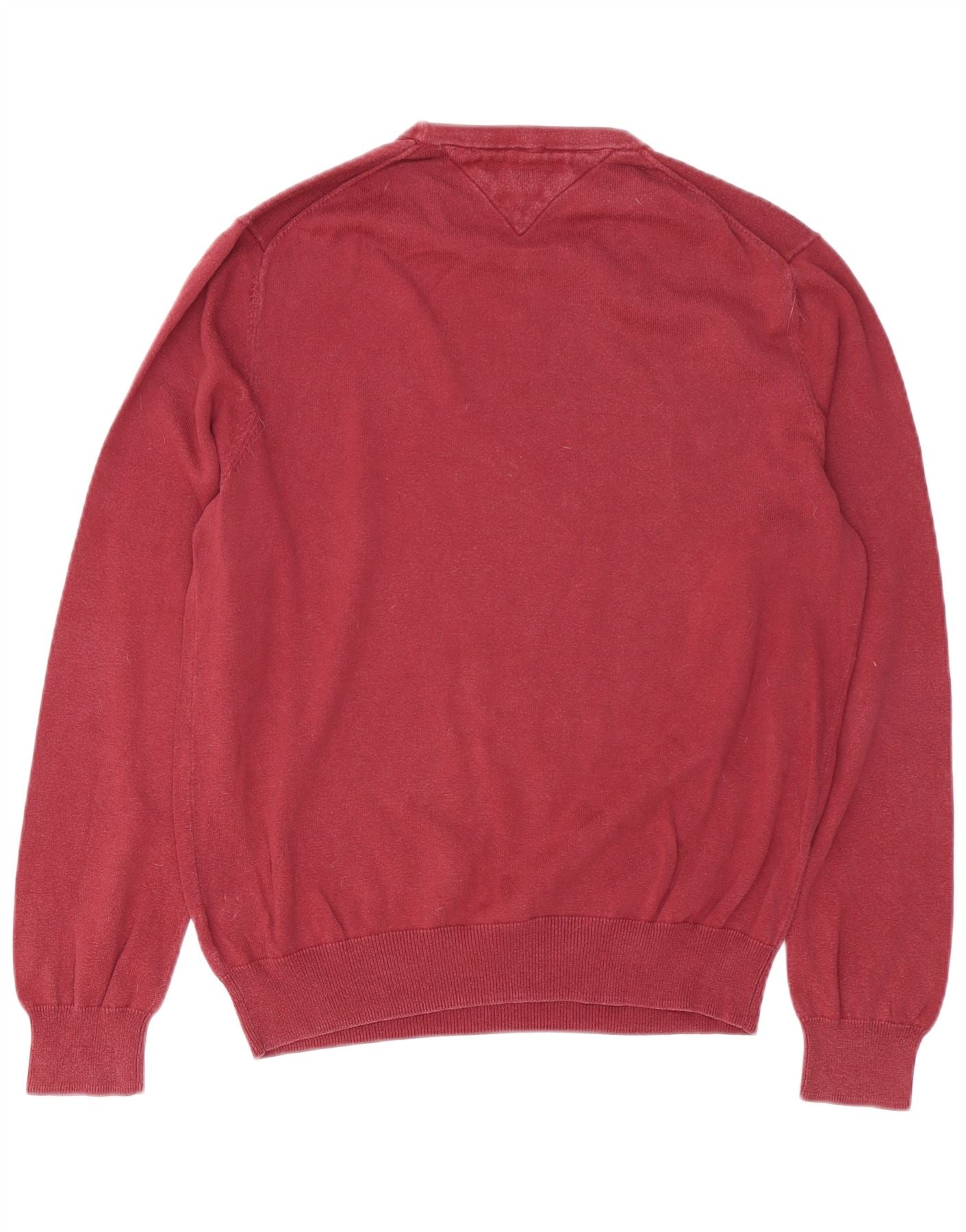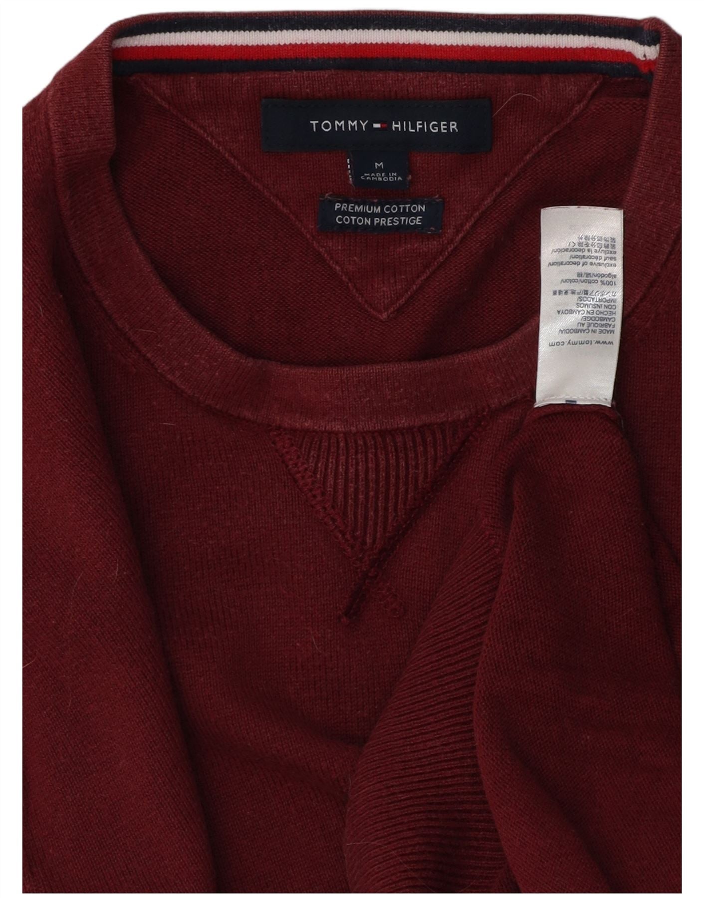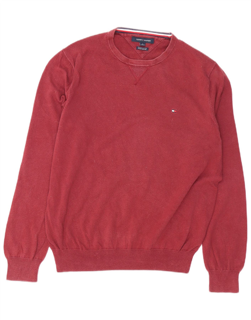 TOMMY HILFIGER Męski sweter z okrągłym dekoltem, średniej wielkości bordowa bawełna