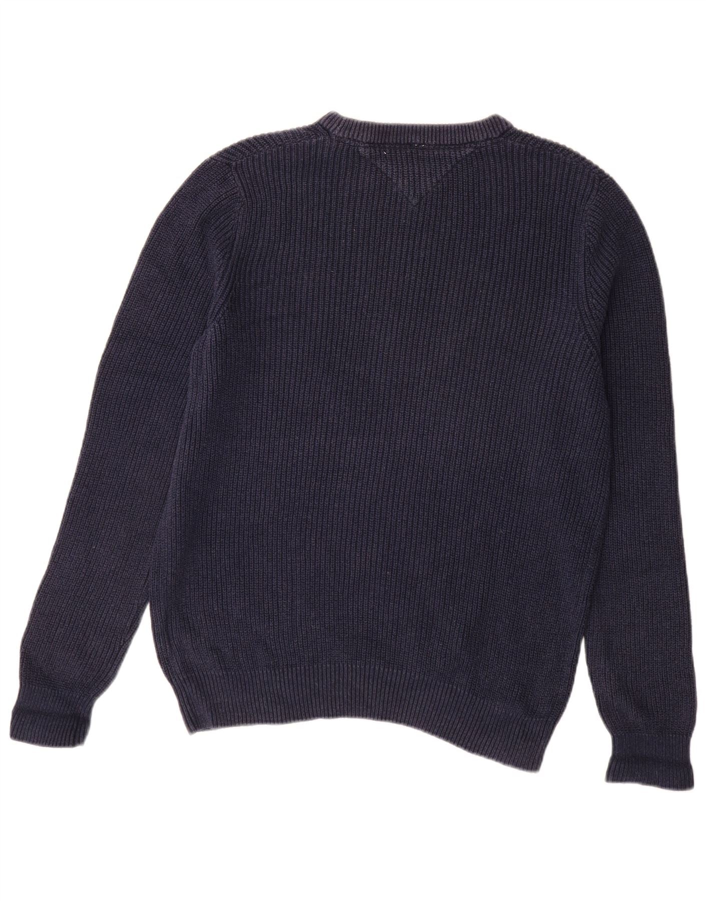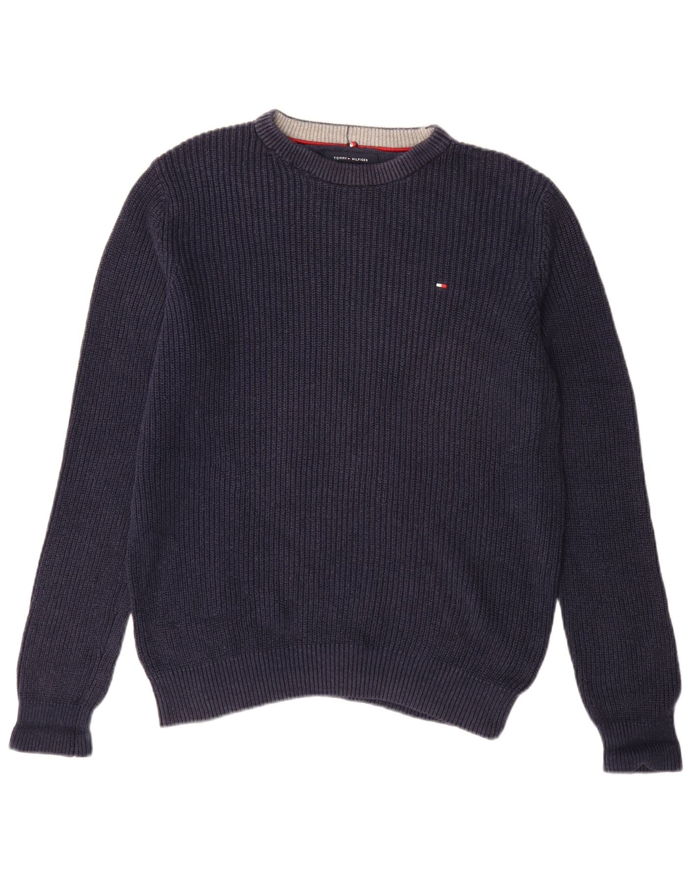 TOMMY HILFIGER Mens Crew Neck Jumper Sweater Medium Navy Blue Cotton
