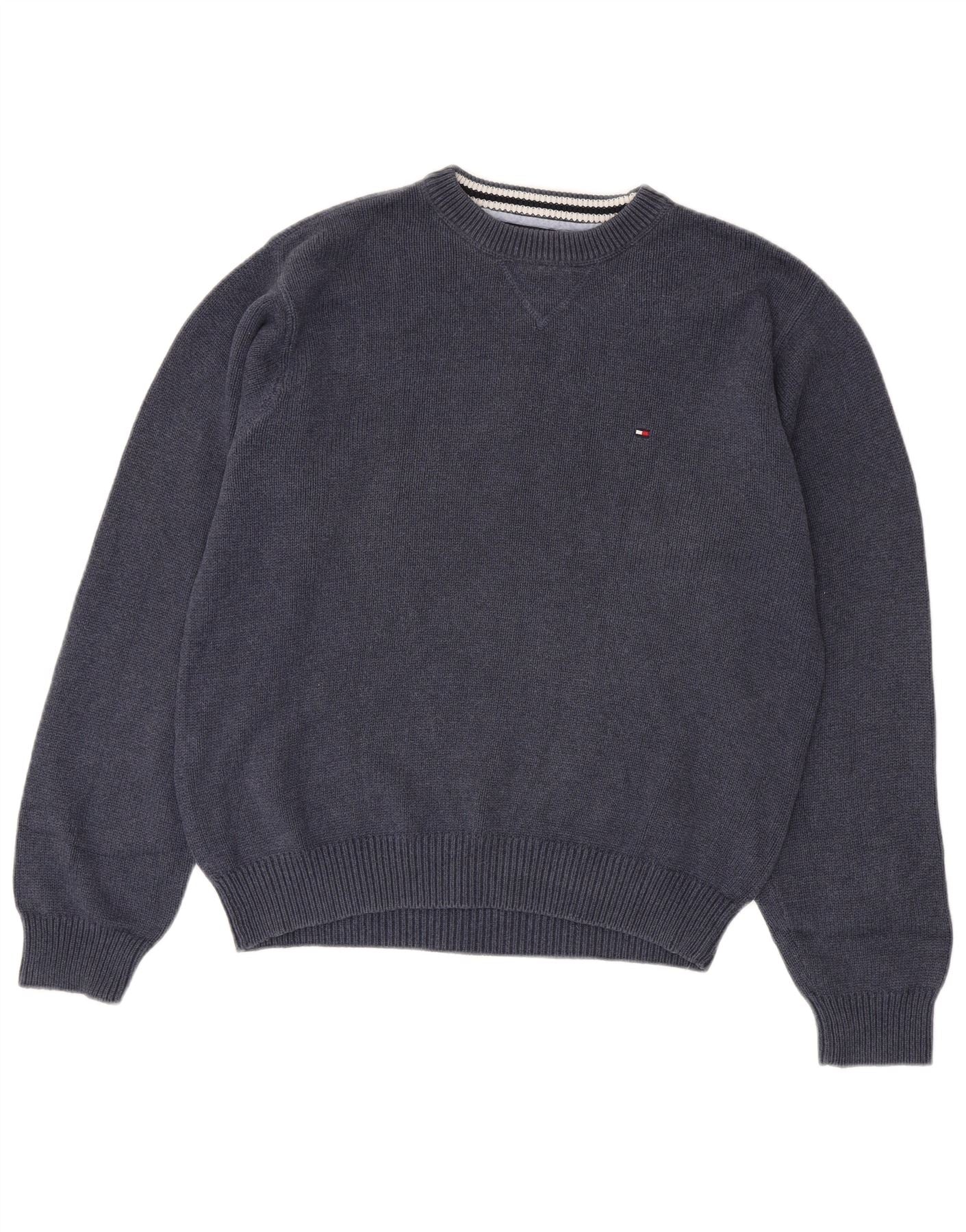 TOMMY HILFIGER Męski sweter z okrągłym dekoltem, średni granatowy, bawełniany