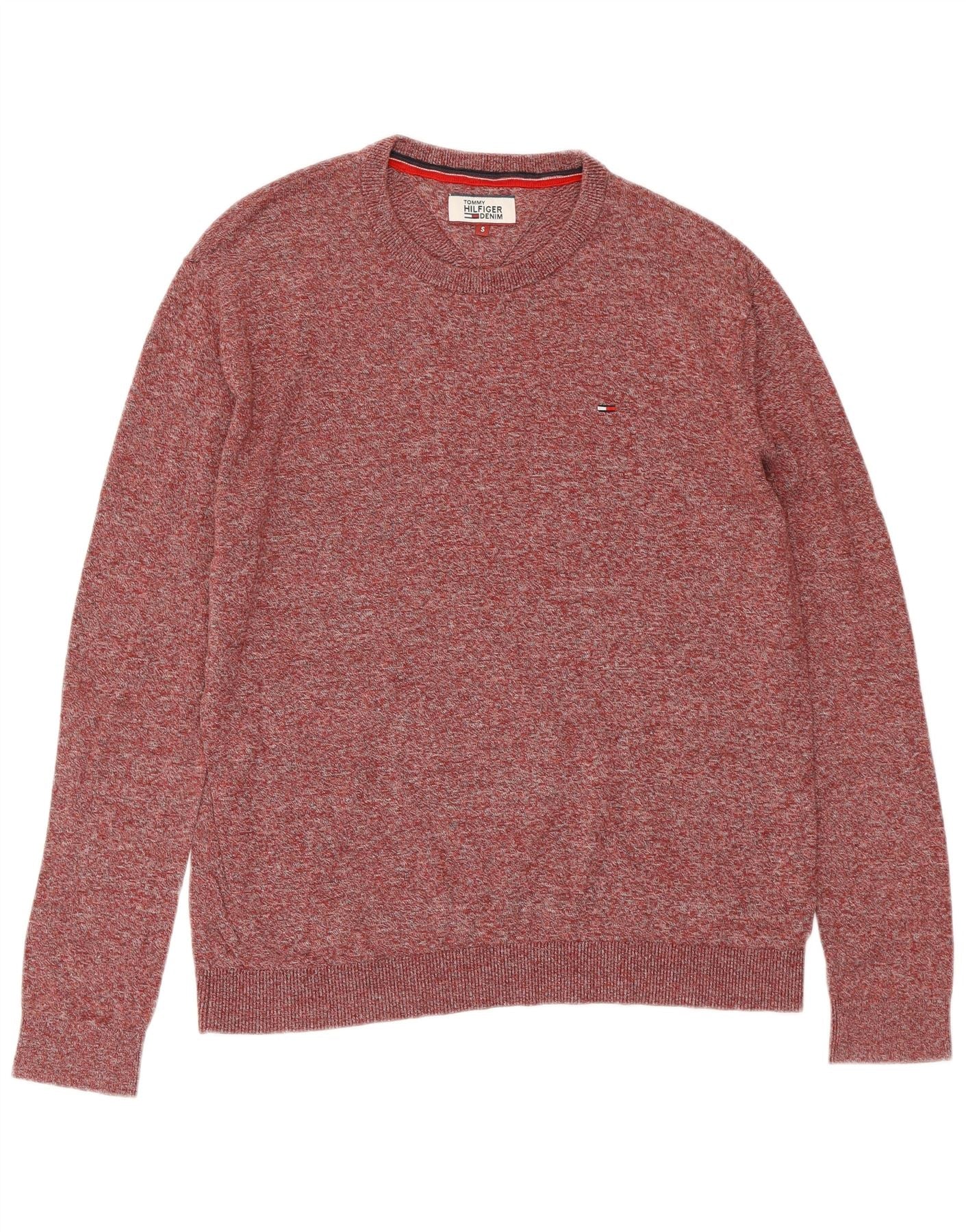 TOMMY HILFIGER Męski sweter z okrągłym dekoltem, mały, bordowy, bawełniany