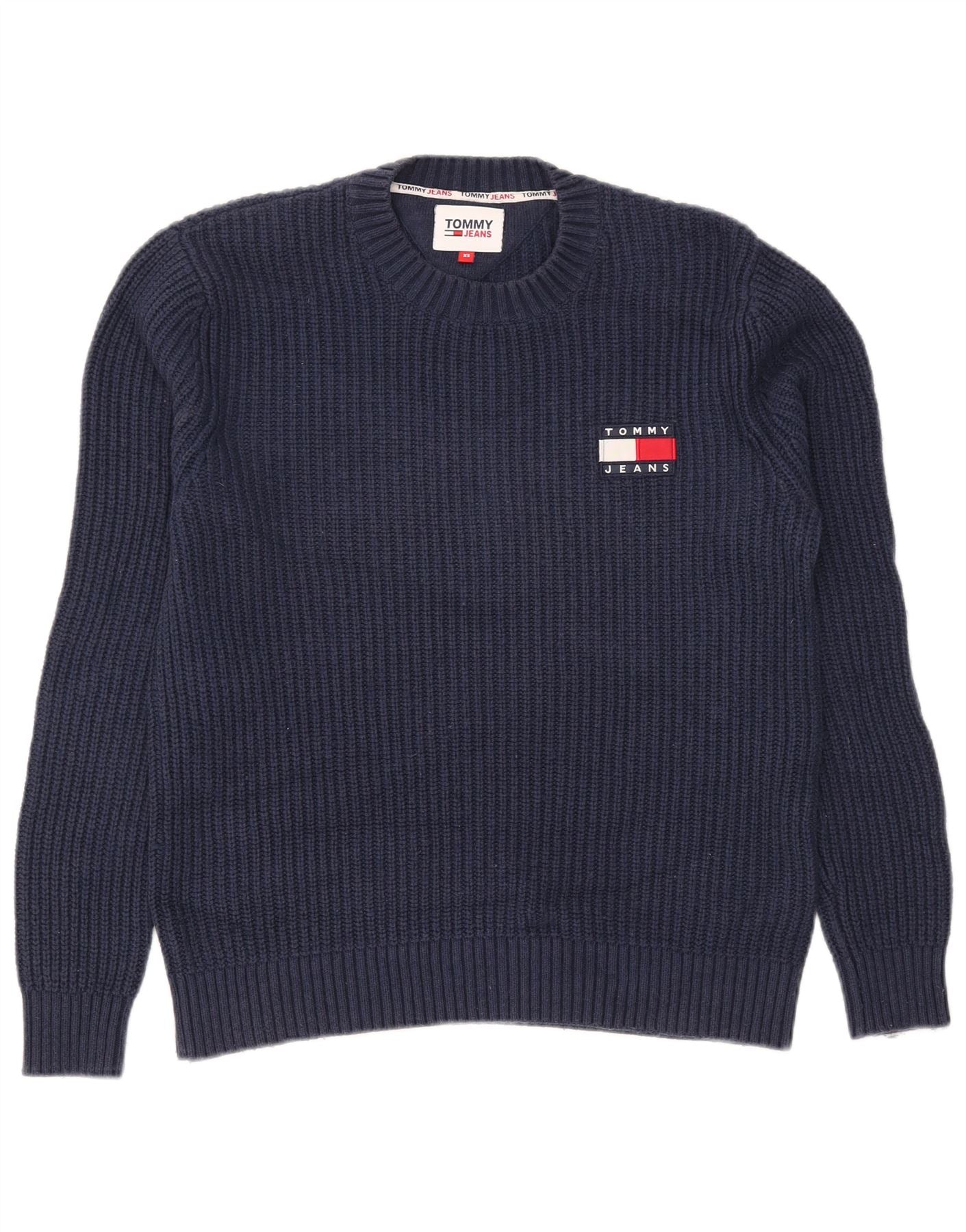 TOMMY HILFIGER Mens Crew Neck Jumper Sweater XS Navy Blue Cotton