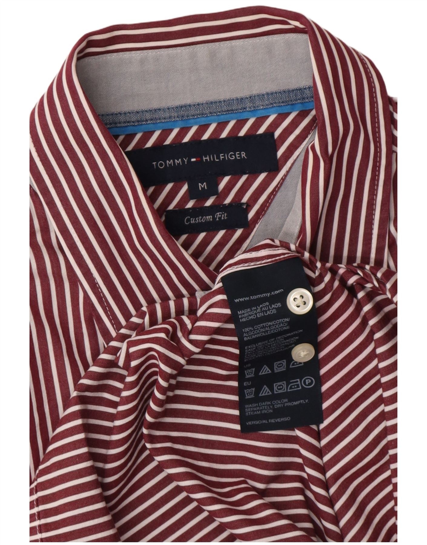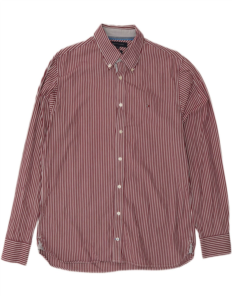Męska koszula o dopasowanym kroju TOMMY HILFIGER, bawełniana w średnie bordowe prążki