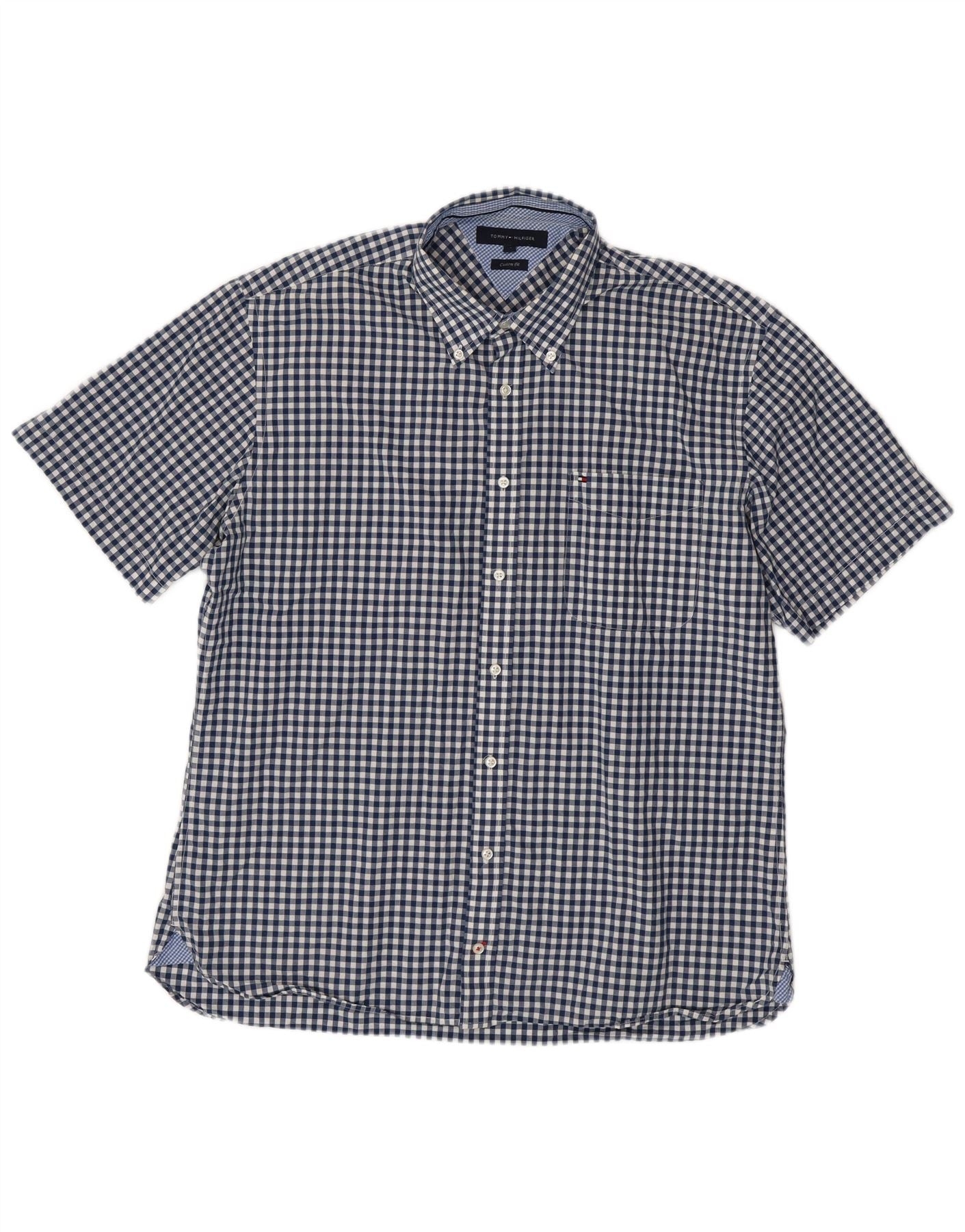 Męska koszula z krótkim rękawem TOMMY HILFIGER o dopasowanym kroju XL, granatowa w kratkę