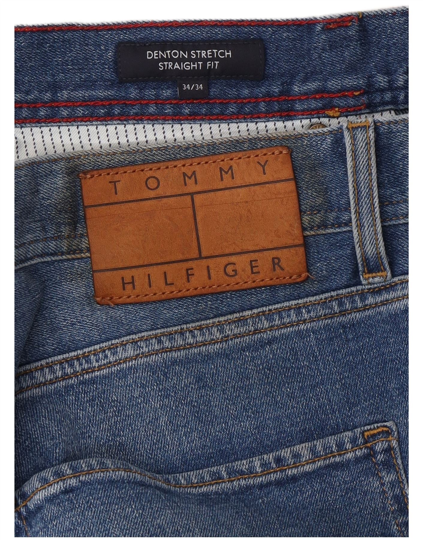 TOMMY HILFIGER Męskie proste dżinsy Denton W34 L34 Granatowa bawełna