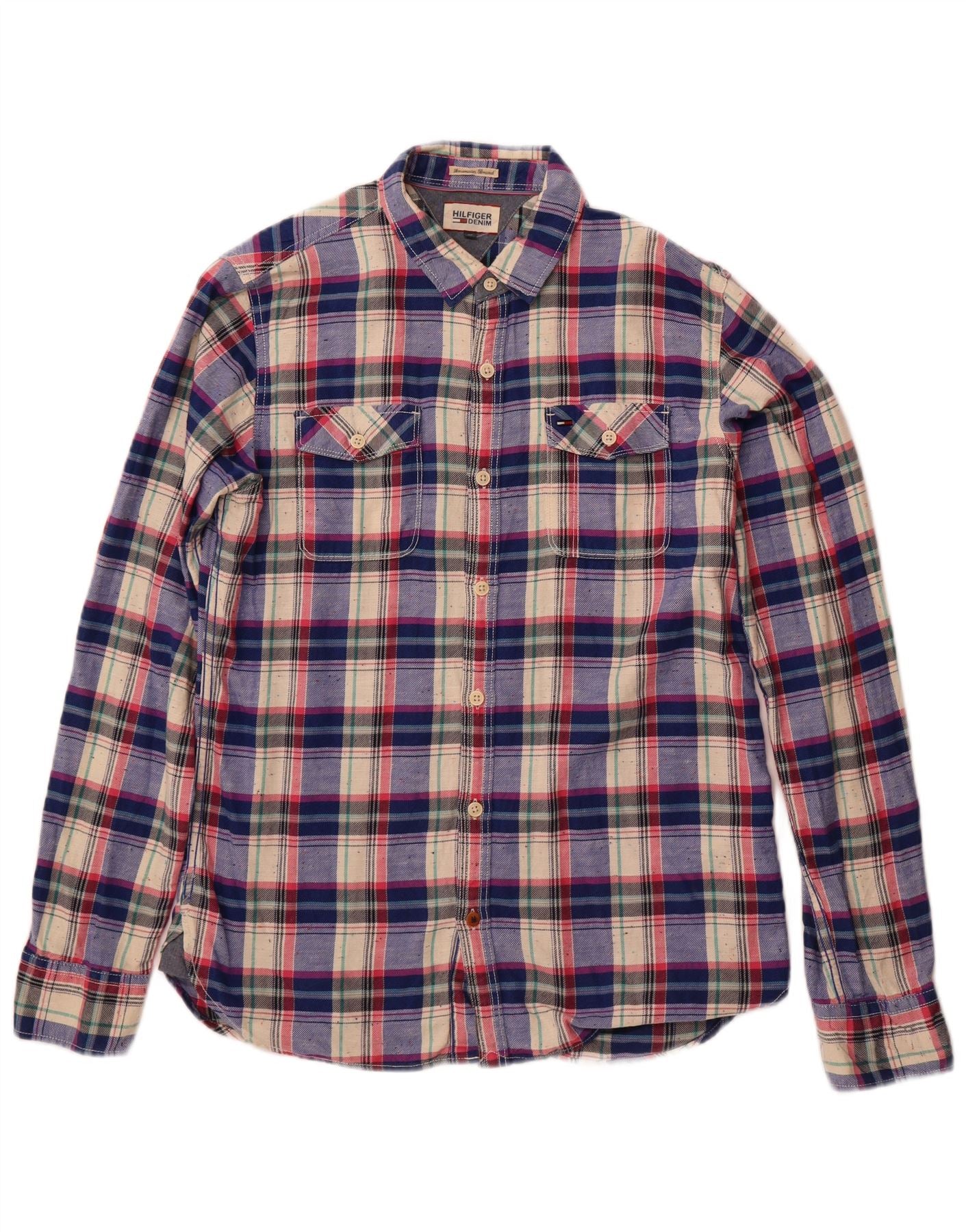 Męska koszula flanelowa TOMMY HILFIGER w średnią niebieską kratkę, bawełniana