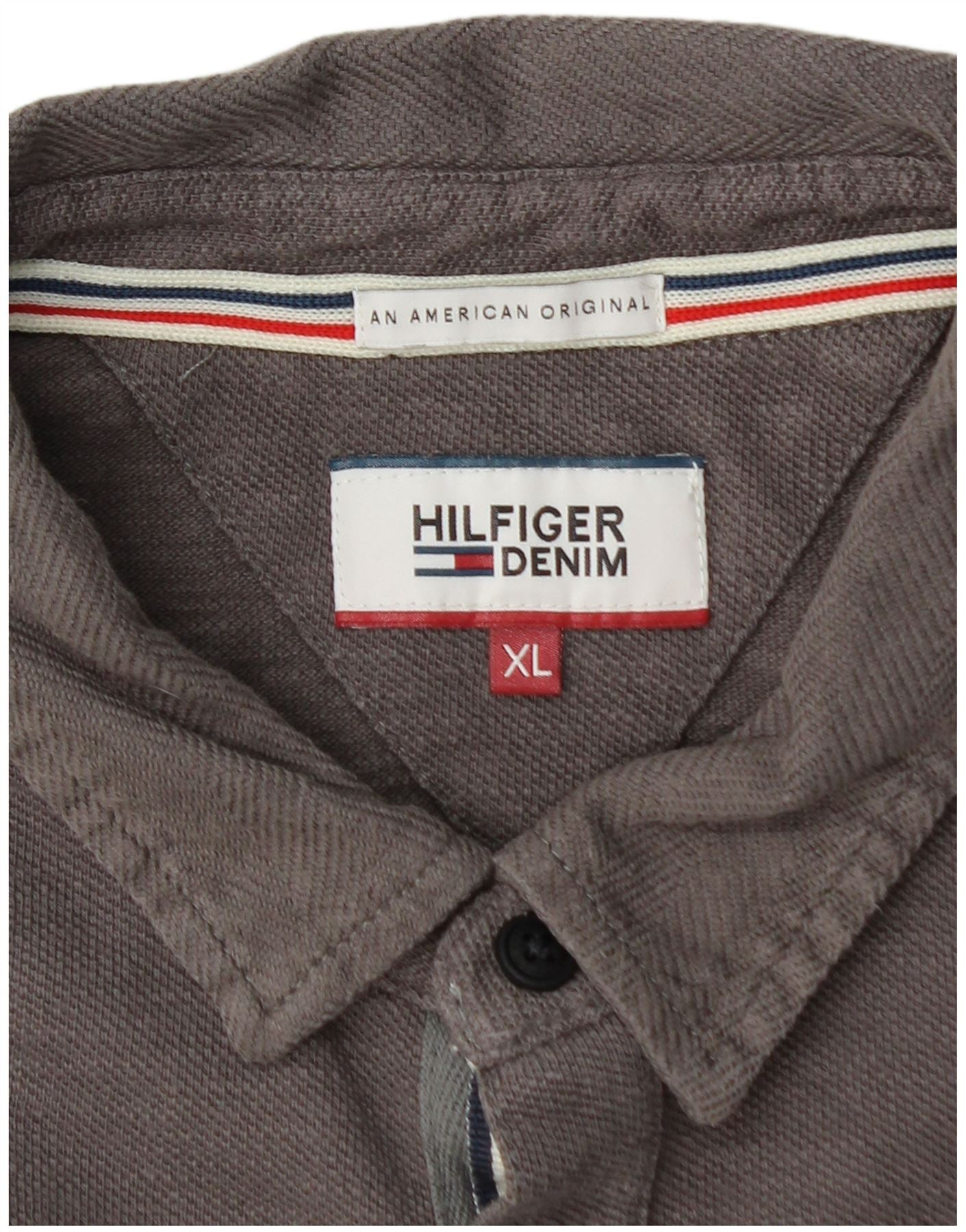 Męska koszulka polo z długim rękawem i grafiką TOMMY HILFIGER, XL, szara