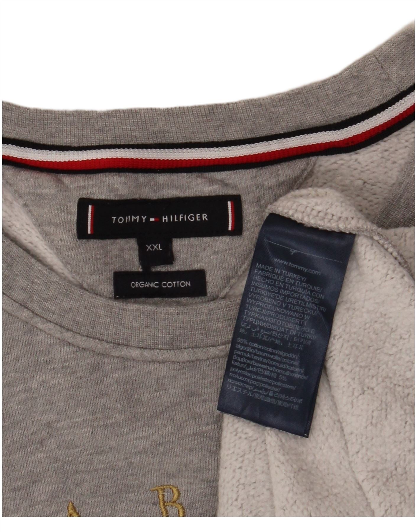 Męska bluza z grafiką Tommy Hilfiger 2XL, szara bawełna z blokami kolorów
