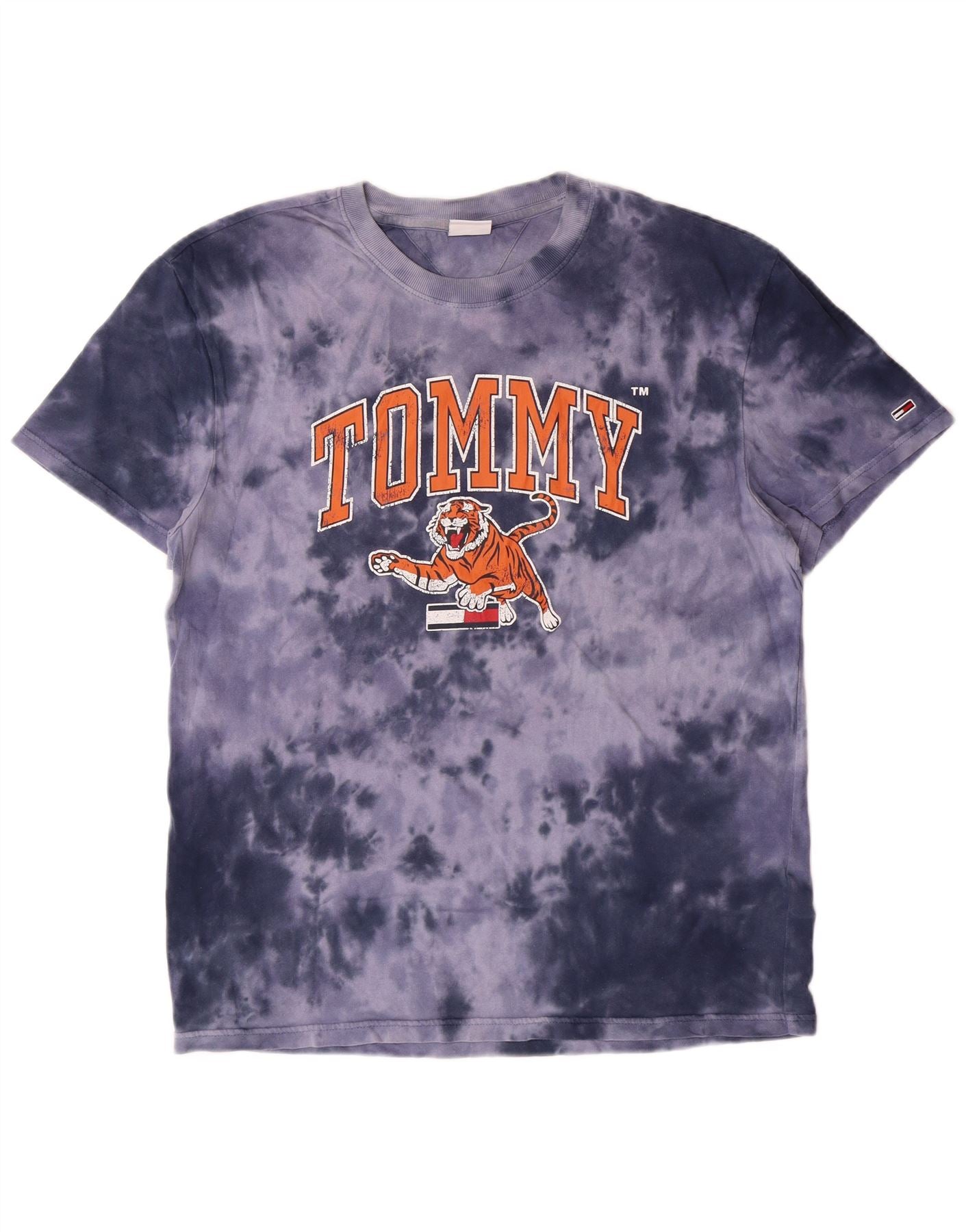 Home > Tommy’ego Hilfigera > Męskie > Koszulki > Męski T-shirt z grafiką TOMMY HILFIGER, duży, niebieski, bawełniany Tie Dye