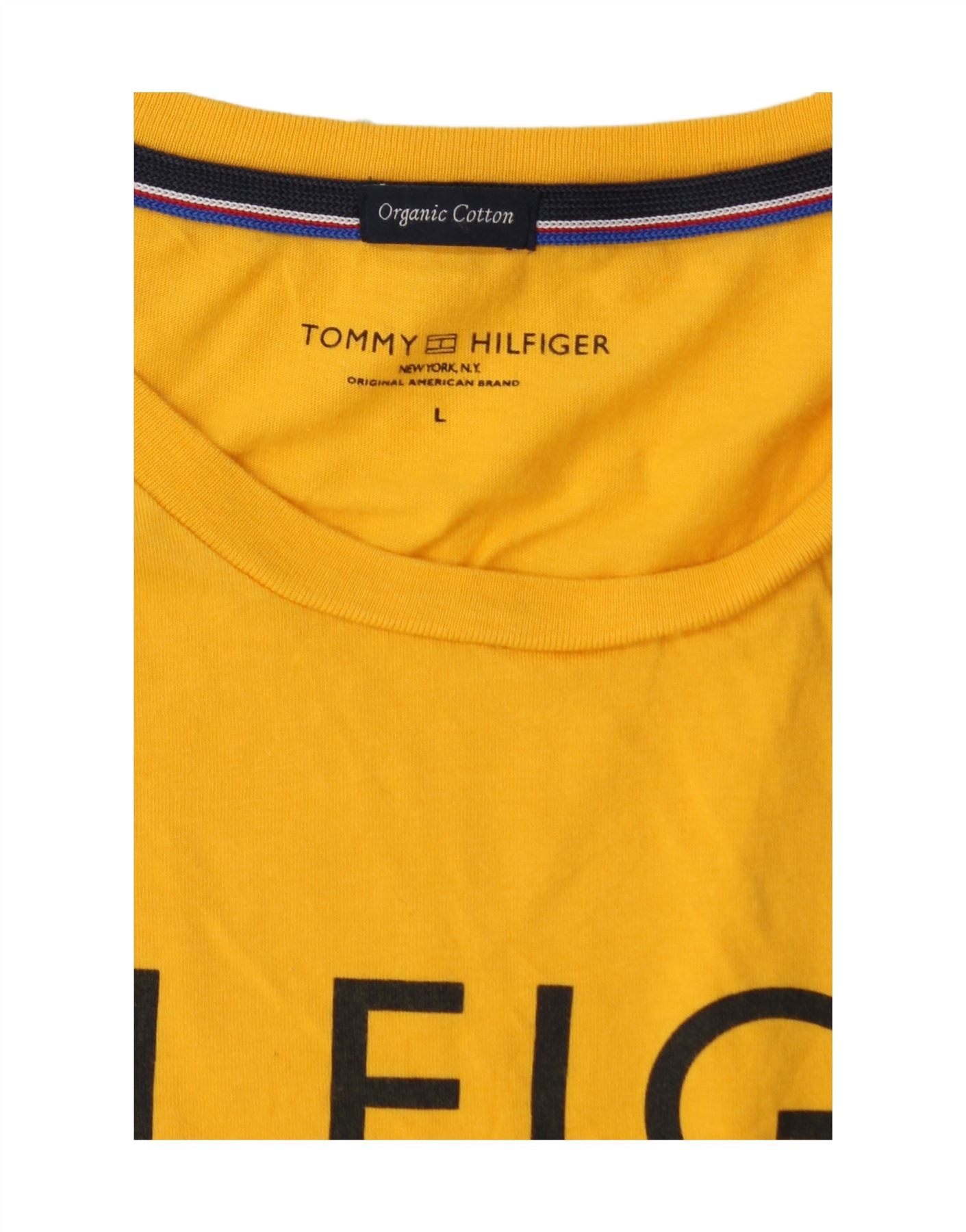 TOMMY HILFIGER Mens Graphic T-Shirt Top Large Yellow Cotton