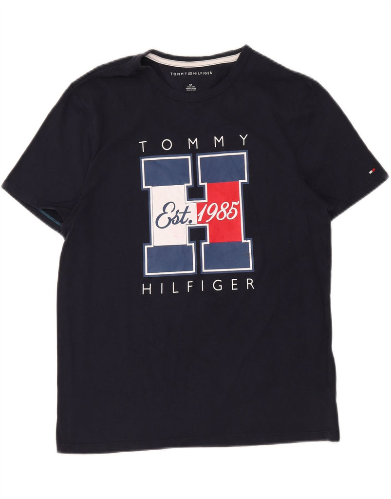 TOMMY HILFIGER Mens Graphic T-Shirt Top Small Navy Blue Cotton