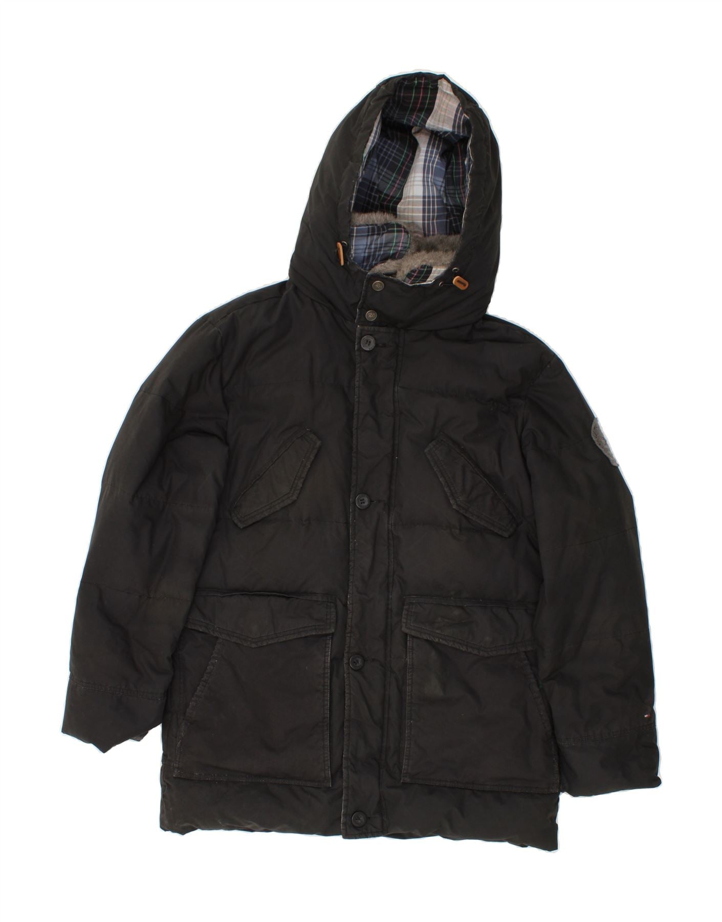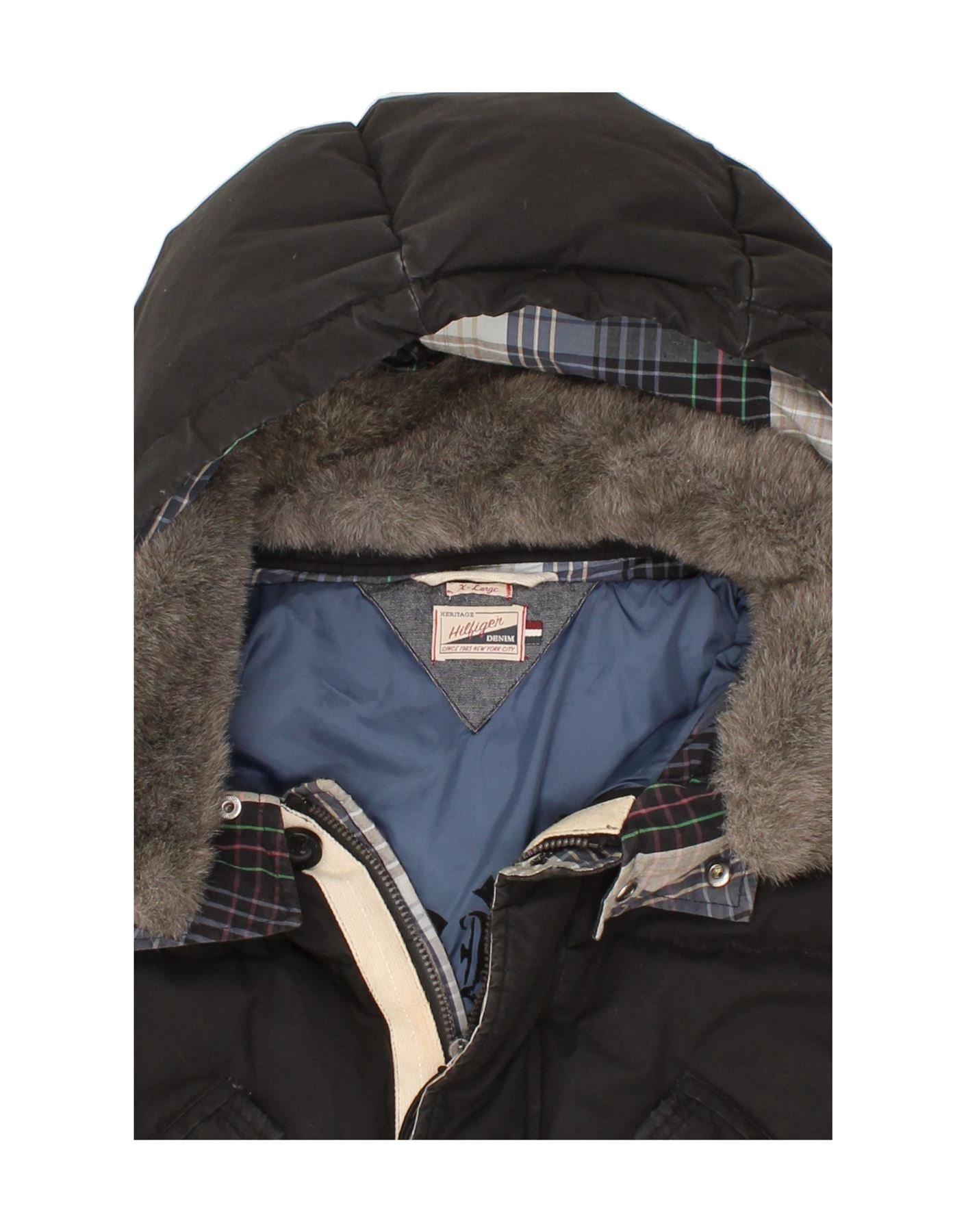 TOMMY HILFIGER Mens Hooded Padded Coat UK 42 XL Black Nylon
