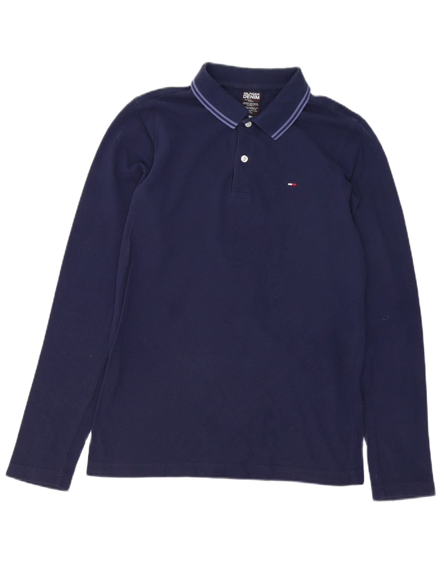 Męska koszulka polo z długim rękawem TOMMY HILFIGER, średnia, granatowa, bawełniana