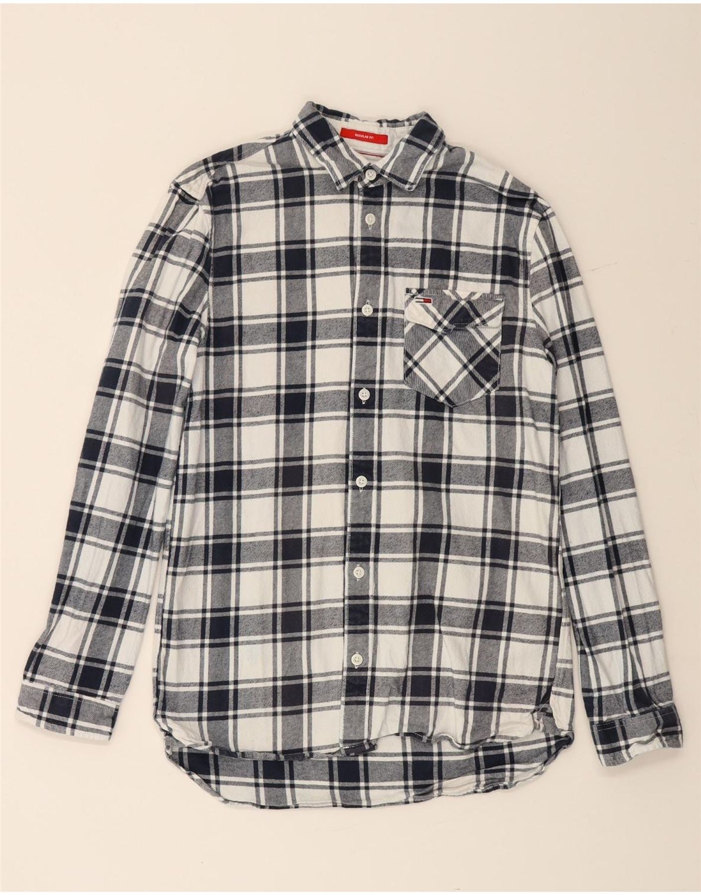 Męska koszula flanelowa TOMMY HILFIGER o regularnym kroju, mała, granatowa, bawełniana w kratę