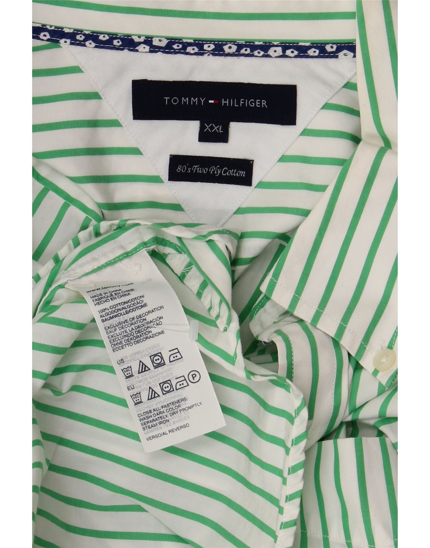 Koszula męska TOMMY HILFIGER 2XL, bawełniana, zielona w prążki