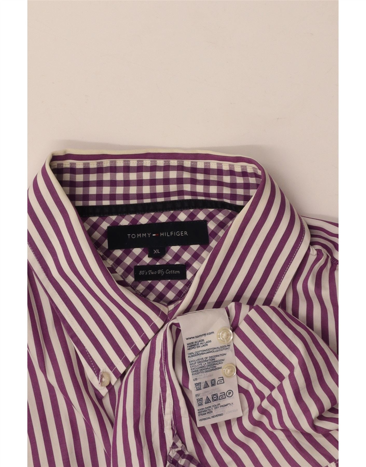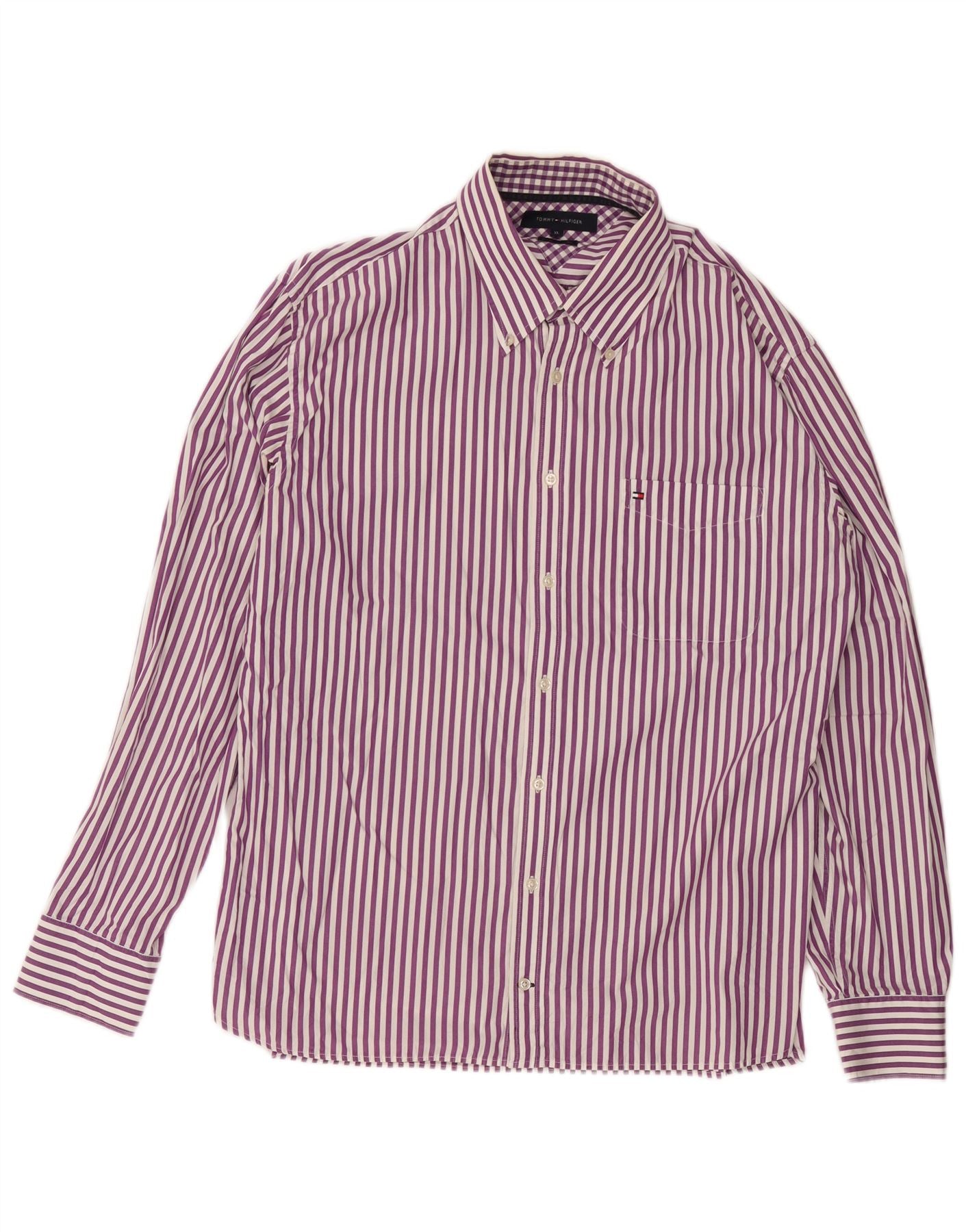 Koszula męska TOMMY HILFIGER XL, fioletowa, bawełniana w prążki