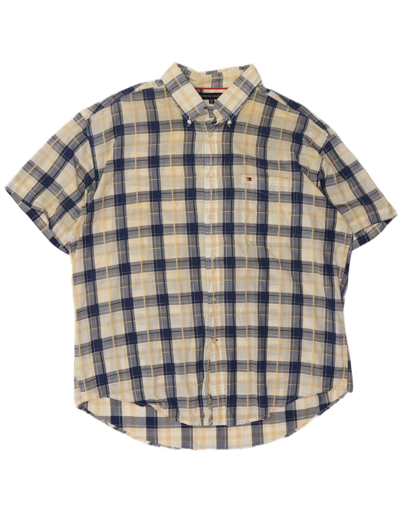 Koszula męska z krótkim rękawem TOMMY HILFIGER 2XL, bawełniana, granatowa w kratkę