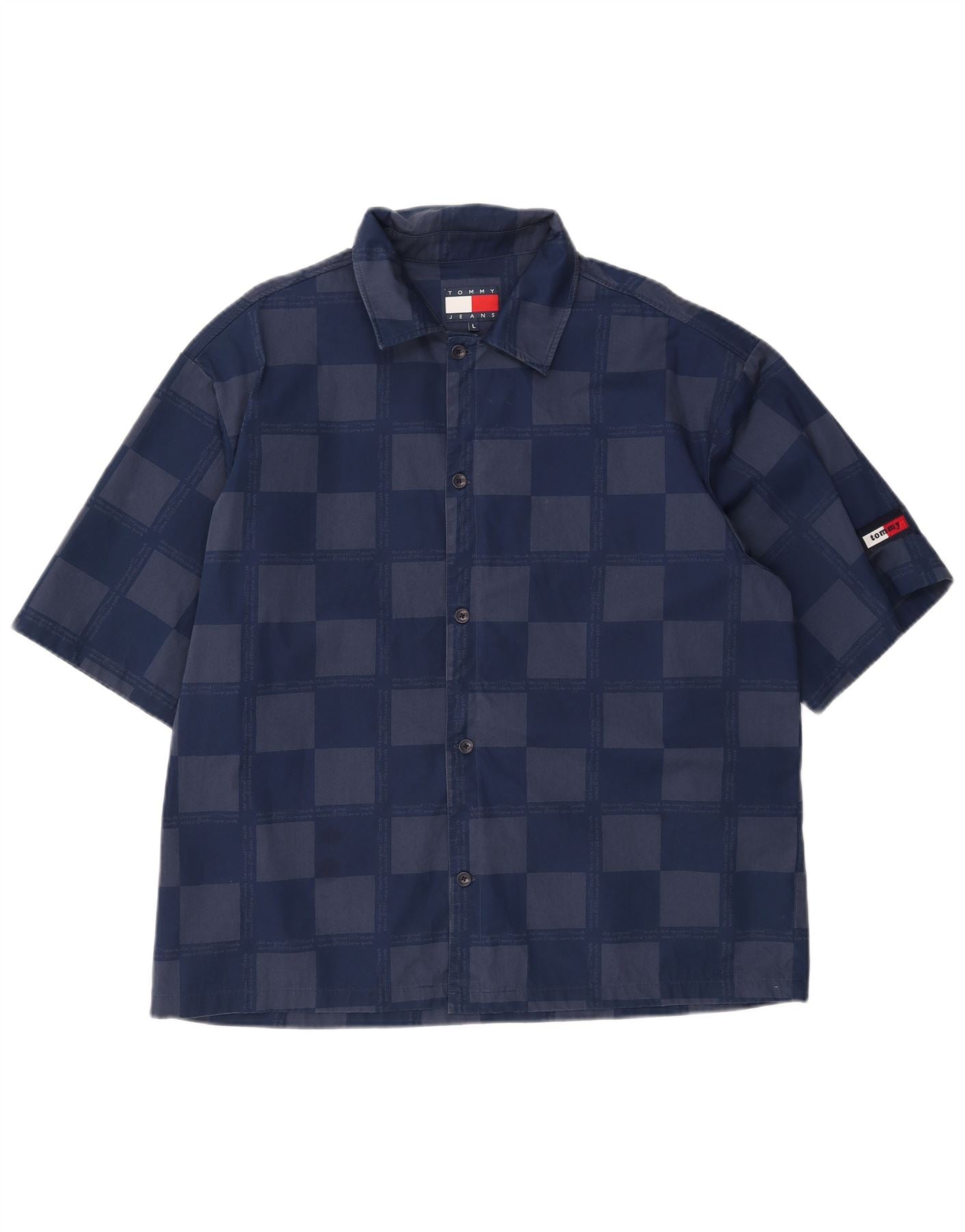 Męska koszula z krótkim rękawem TOMMY HILFIGER, duża, granatowa, geometryczna wiskoza