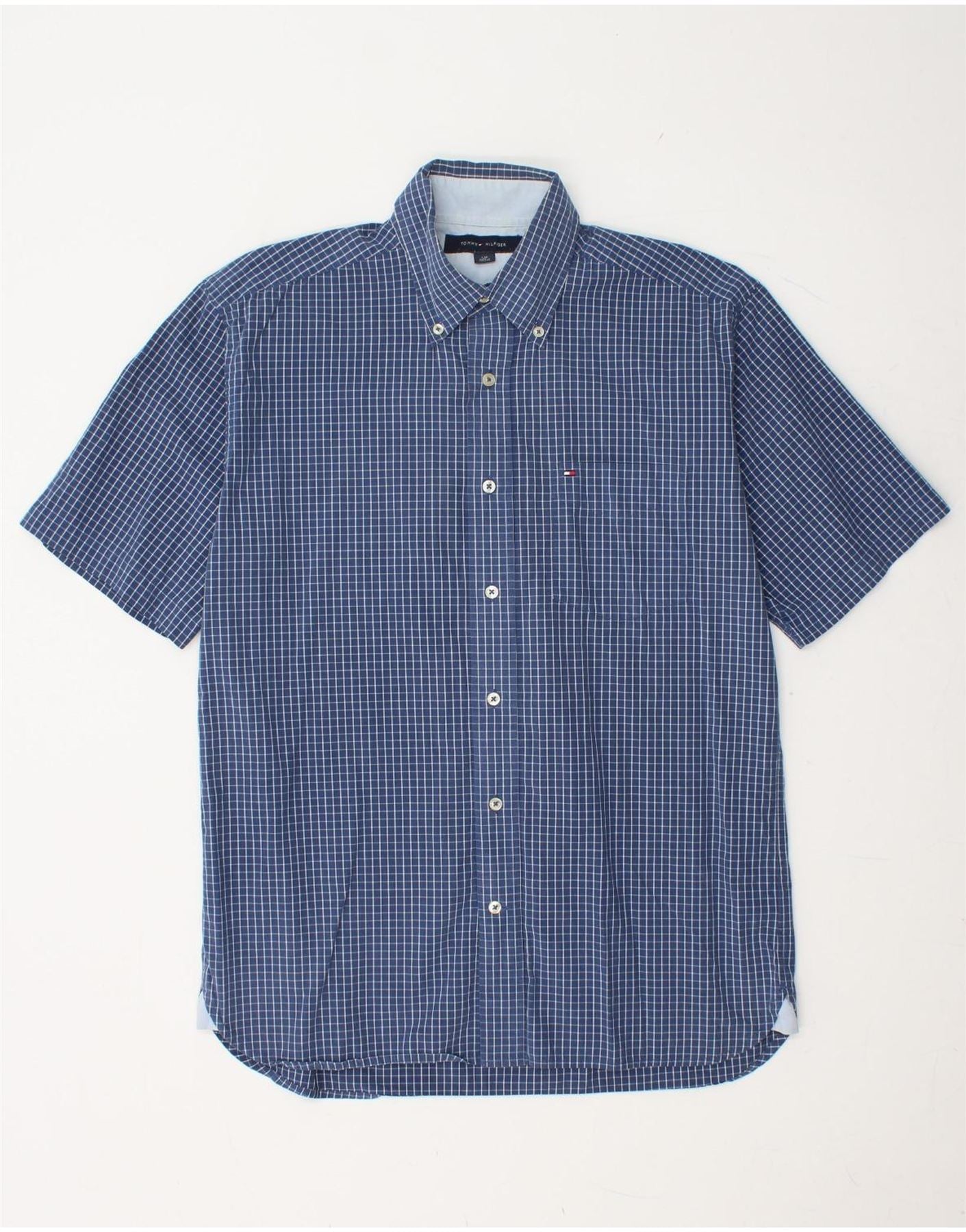 Męska koszula z krótkim rękawem TOMMY HILFIGER, mała, niebieska, bawełniana krata