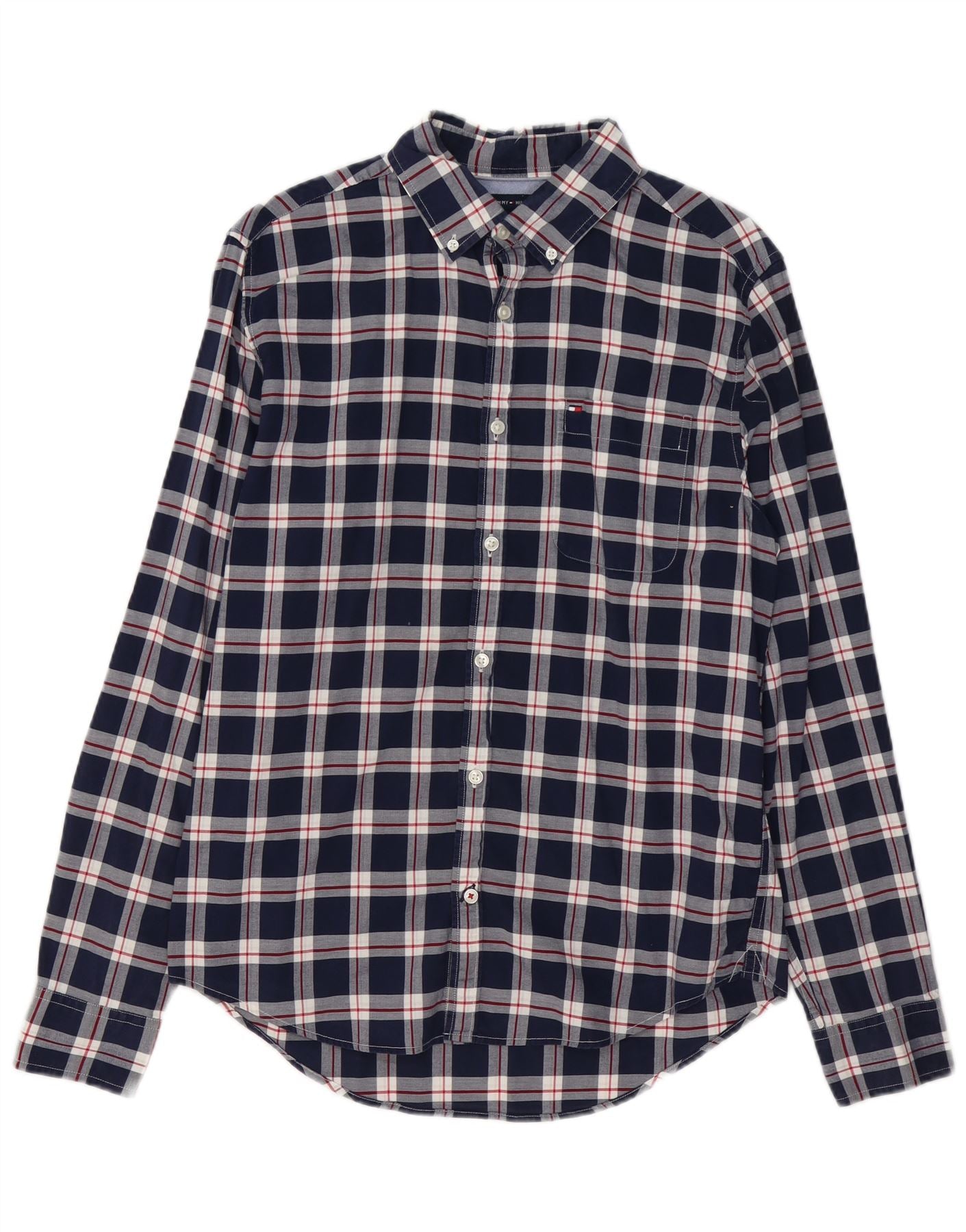 TOMMY HILFIGER Męska koszula flanelowa o dopasowanym kroju, średnia, granatowa, bawełniana w kratę