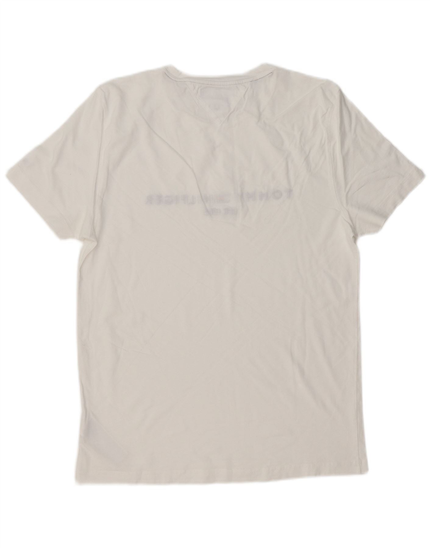 TOMMY HILFIGER Męski T-shirt z grafiką o dopasowanym kroju, duży, biały, bawełniany