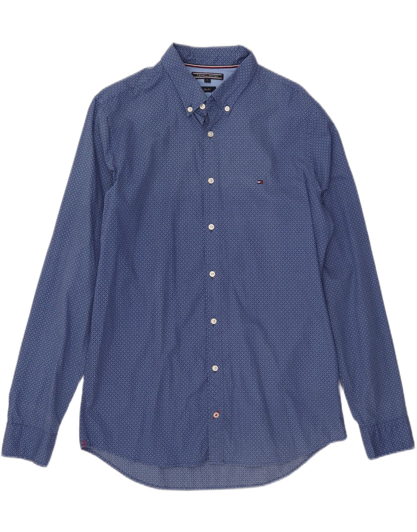 Męska koszula slim fit TOMMY HILFIGER, duża niebieska, geometryczna bawełna