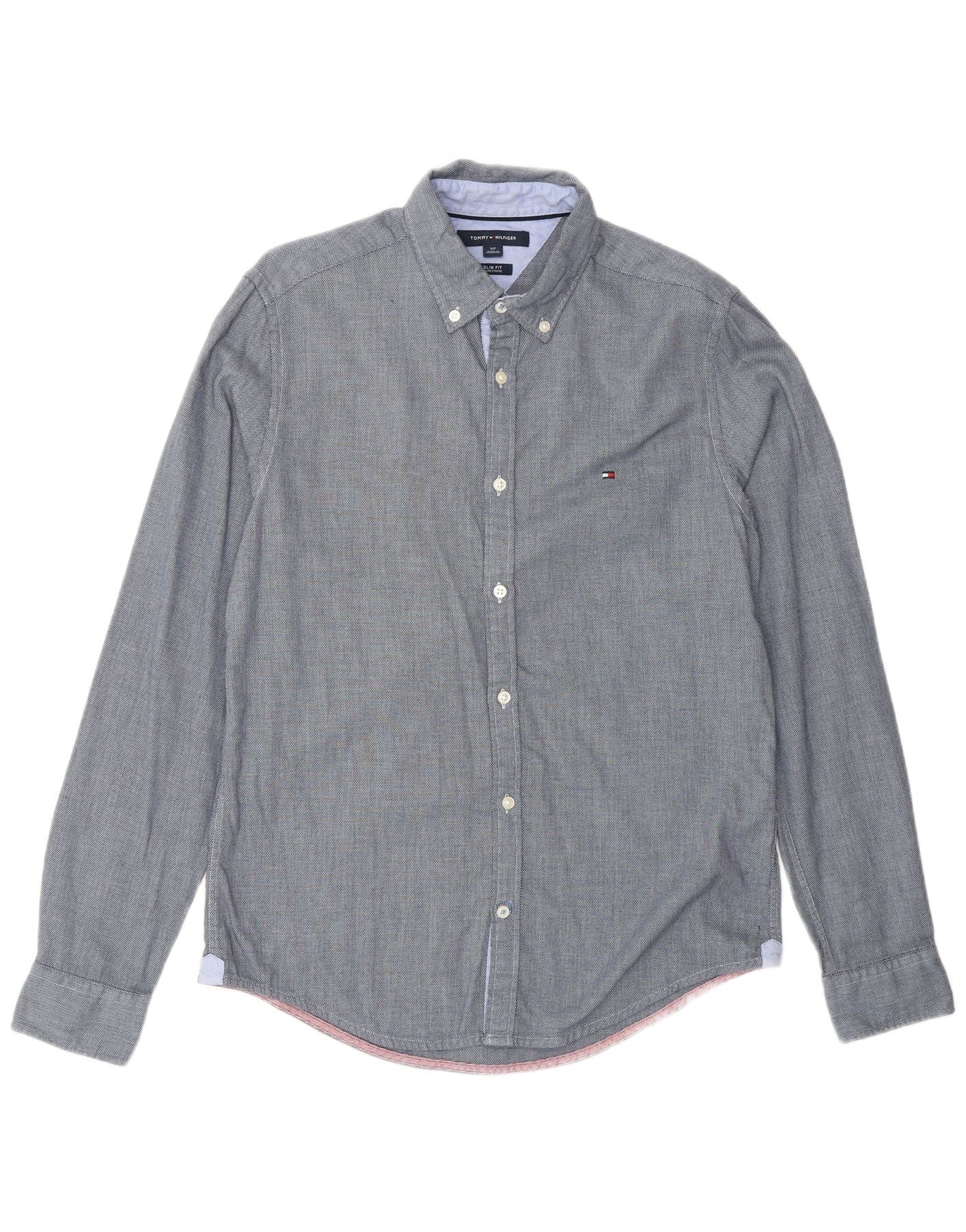 TOMMY HILFIGER Męska koszula slim fit, mała, granatowa, bawełniana