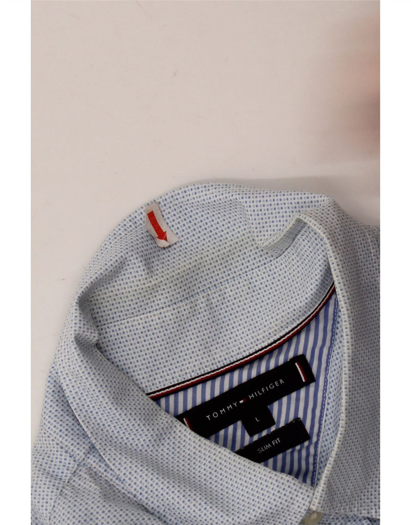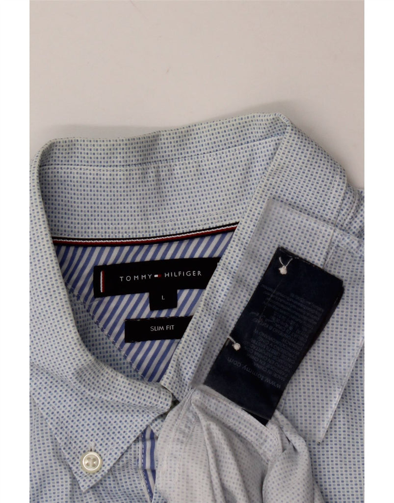 TOMMY HILFIGER Mens Slim Fit Short Sleeve Shirt Large Blue Spotted Cotton