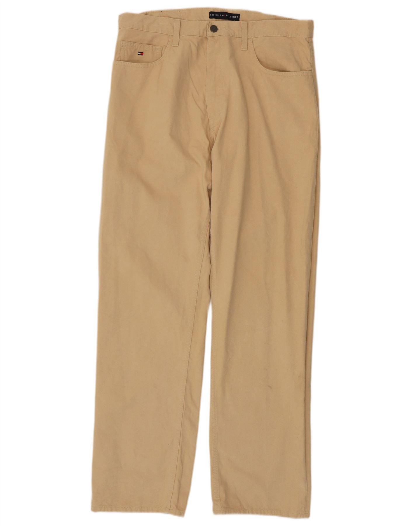 Męskie proste spodnie codzienne TOMMY HILFIGER W34 L32 Beżowa bawełna