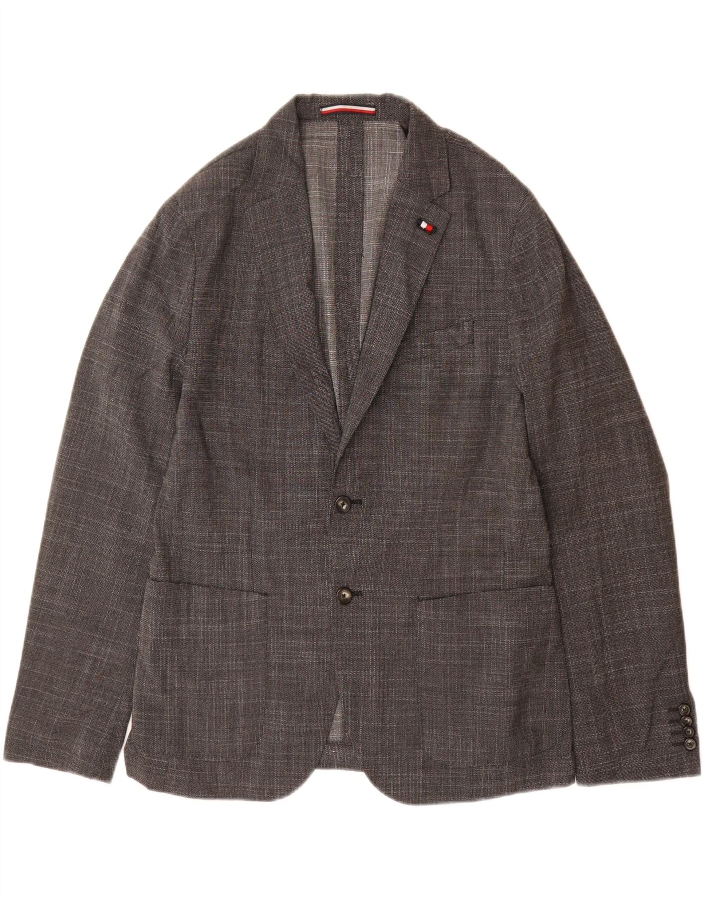 TOMMY HILFIGER Męska dopasowana marynarka zapinana na 2 guziki IT 48 Średni szary
