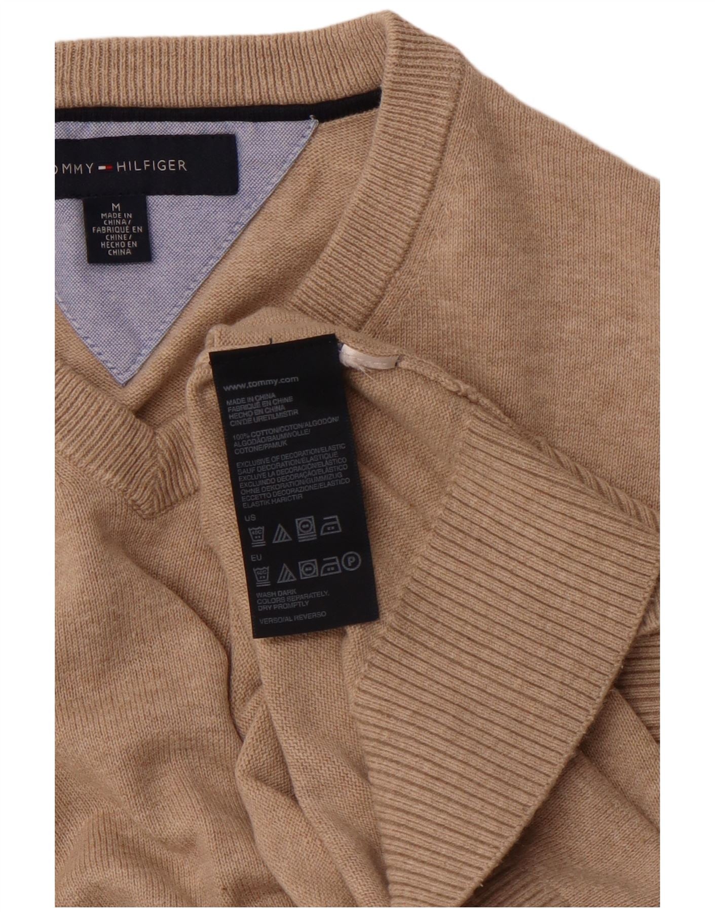 Męski sweter TOMMY HILFIGER z dekoltem w kształcie litery V, średnio beżowy, bawełniany