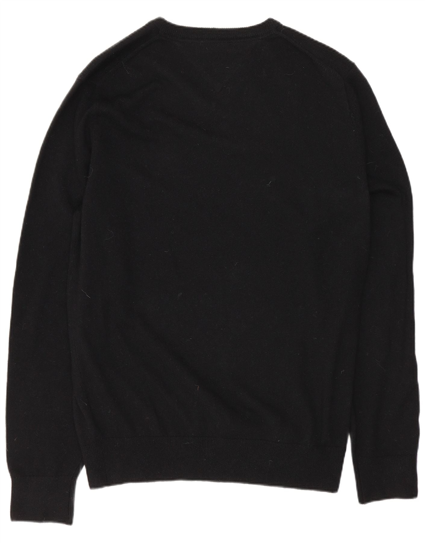 Męski sweter TOMMY HILFIGER z dekoltem w kształcie litery V, średnio czarny, z owczej wełny