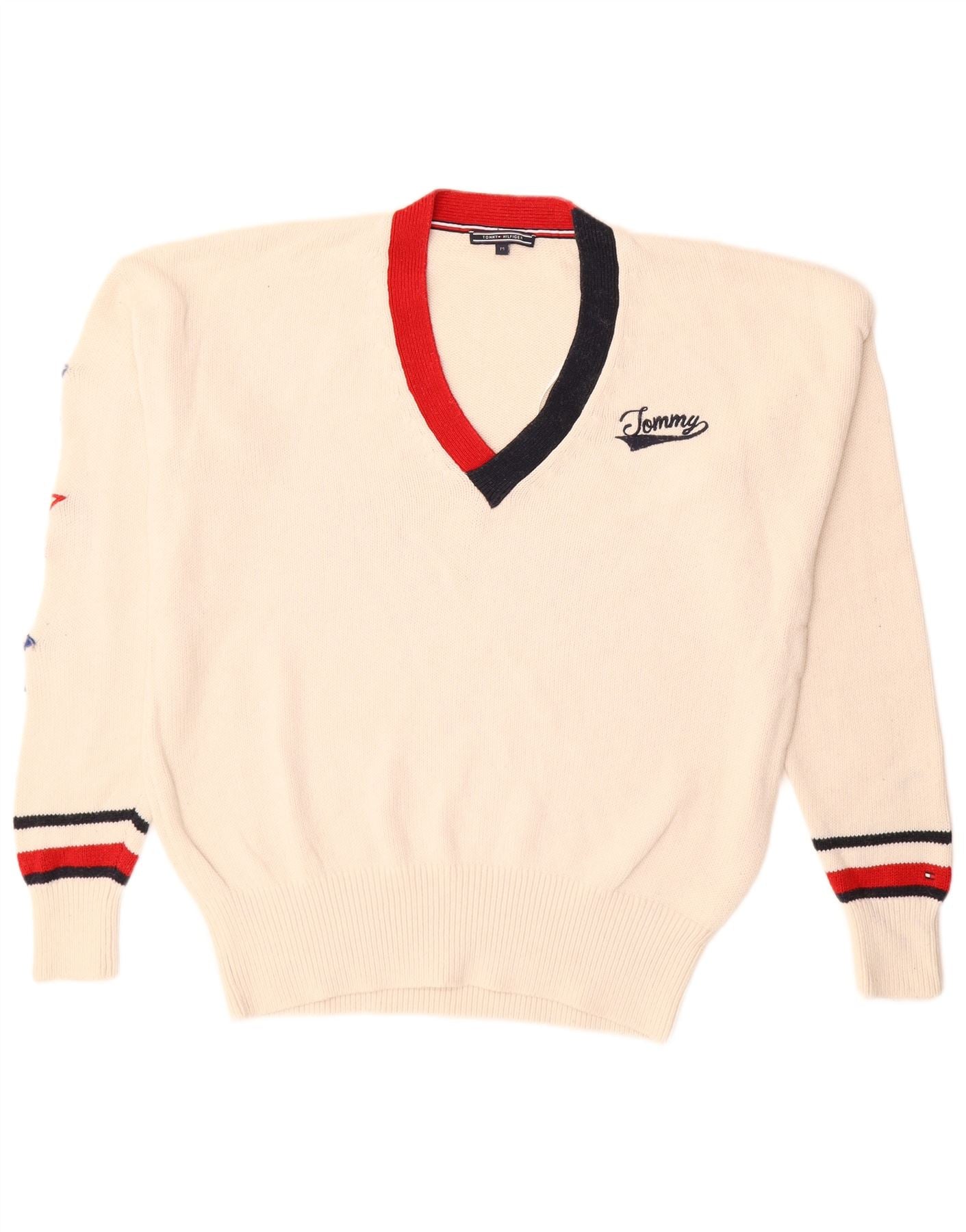 Home > Tommy’ego Hilfigera > Męskie > Swetry > Męski sweter Tommy Hilfiger z dekoltem w kształcie litery V, średniej wielkości złamanej bieli, bawełniany