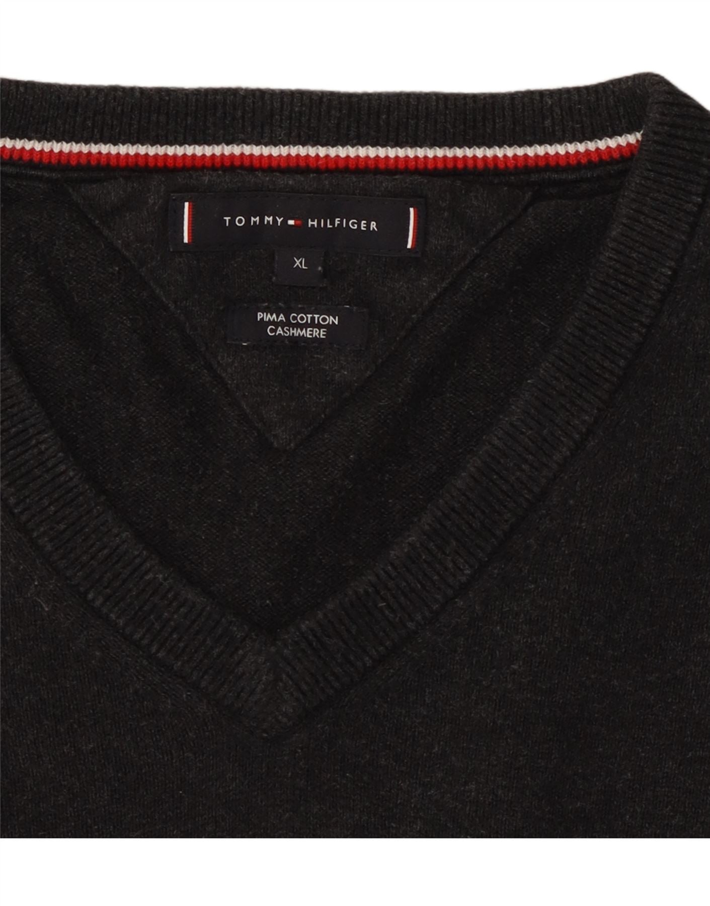 TOMMY HILFIGER Męski sweter z dekoltem w kształcie litery V XL, szara bawełna