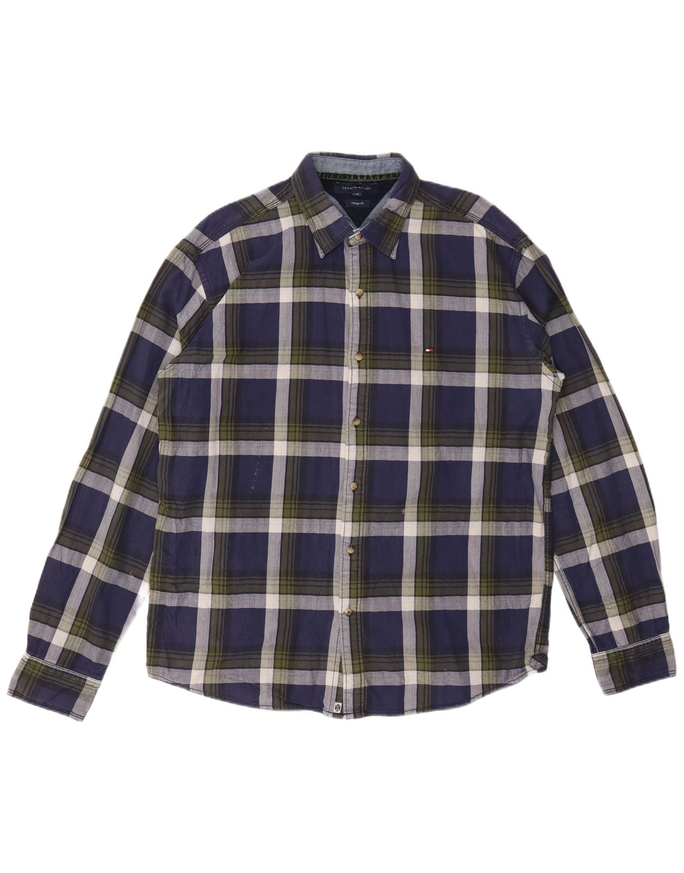 TOMMY HILFIGER Męska koszula flanelowa w stylu vintage XL, granatowa, bawełniana w kratę