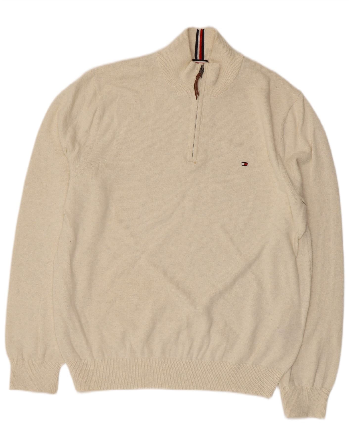TOMMY HILFIGER Męski sweter zapinany na zamek, duży, bawełniany w kolorze złamanej bieli