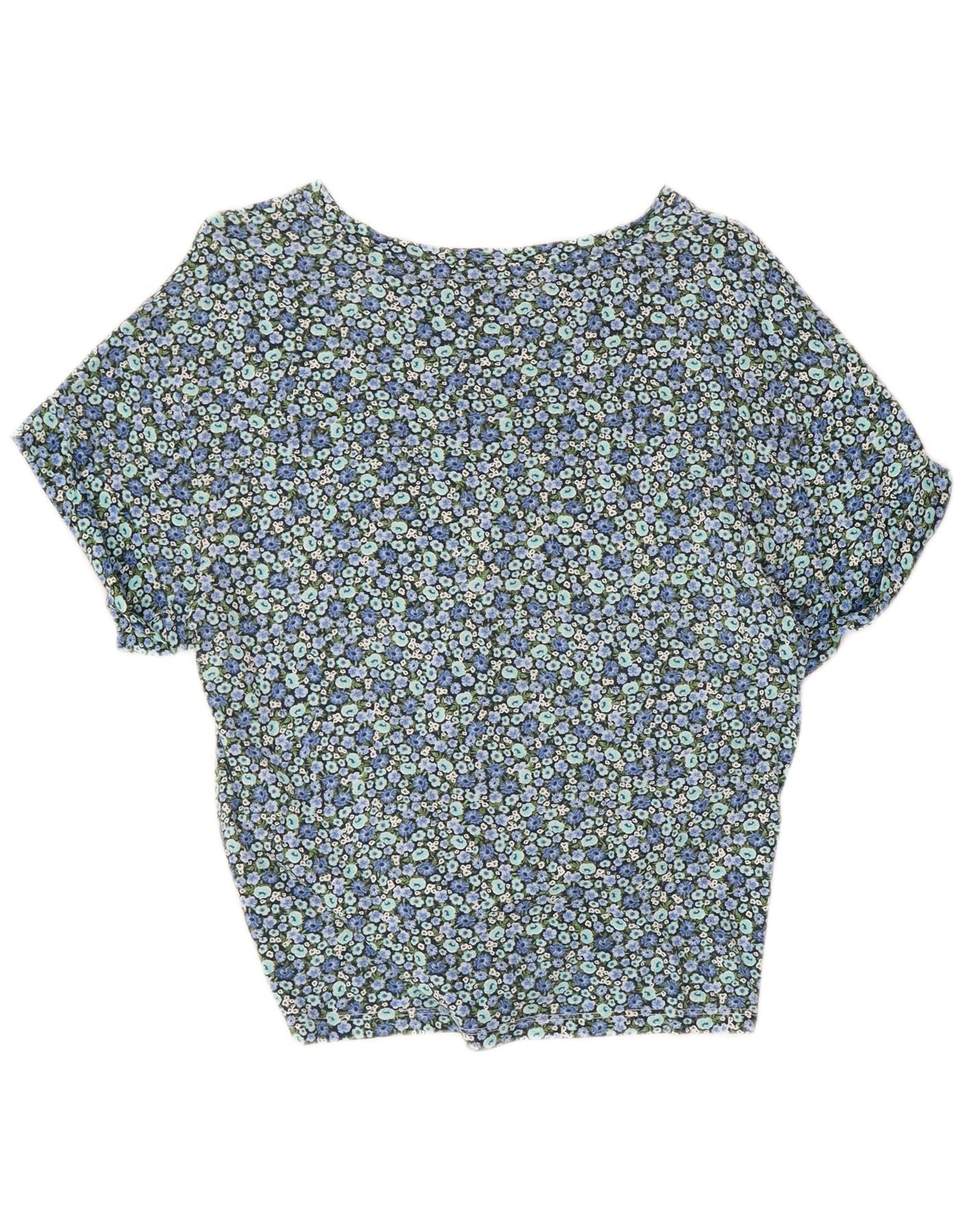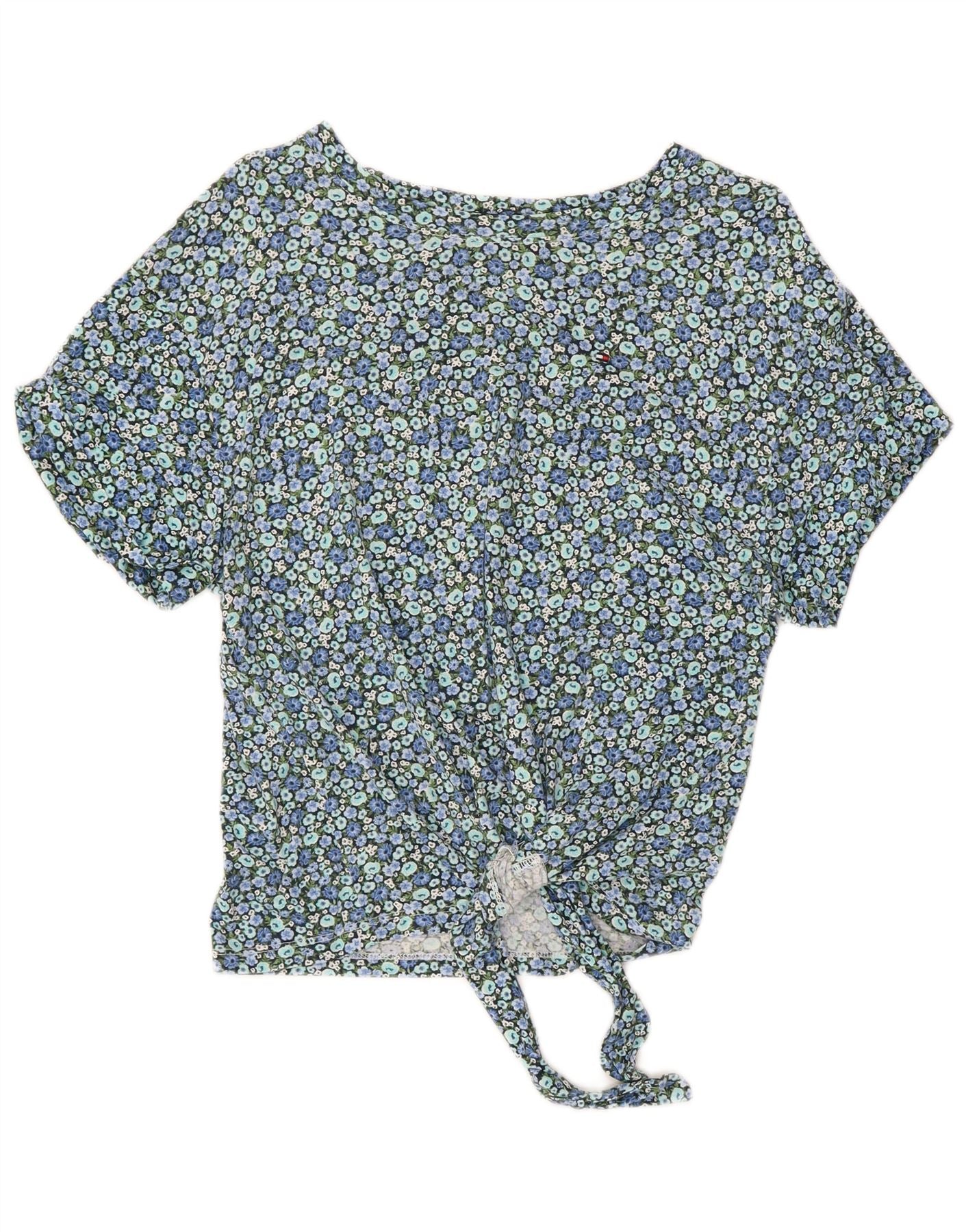Krótka bluzka damska TOMMY HILFIGER UK 10, mała, niebieska, z bawełny w kwiaty