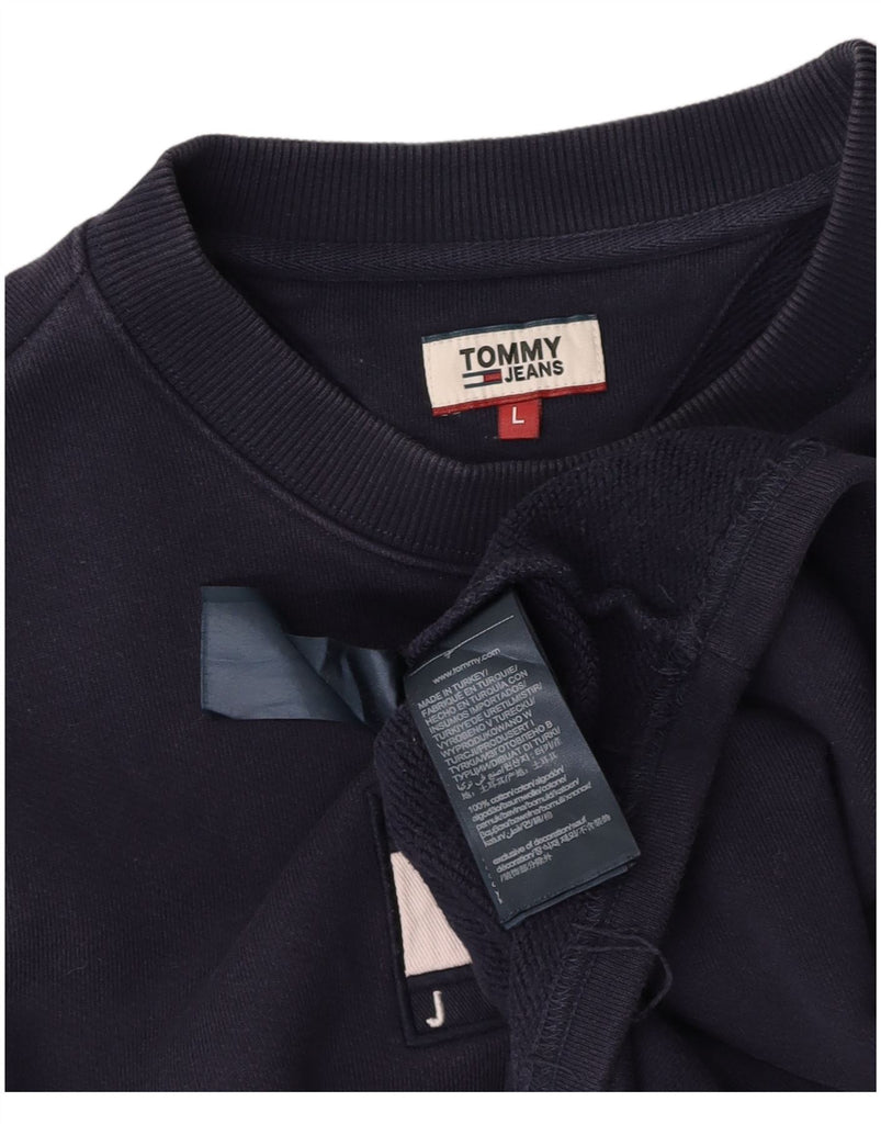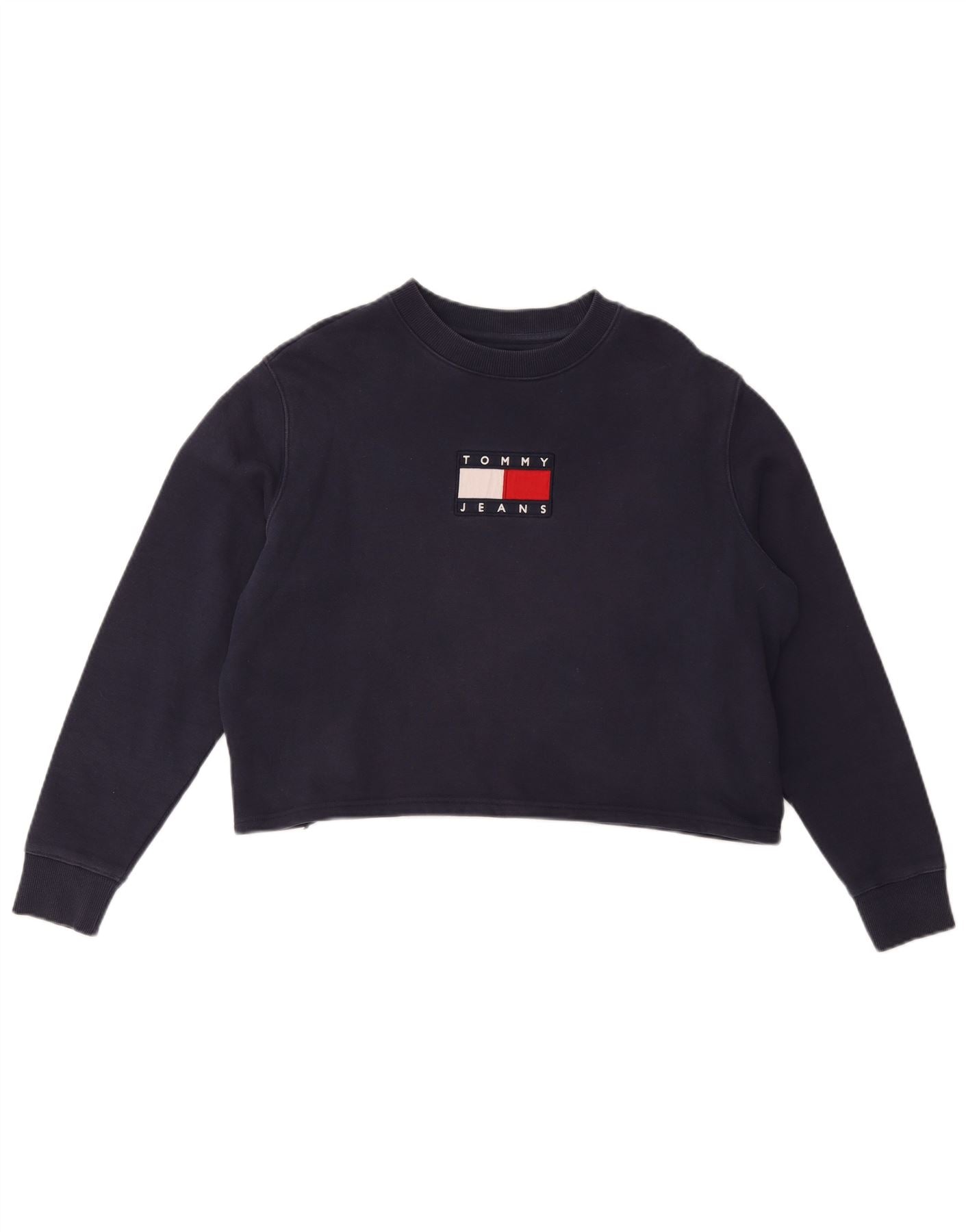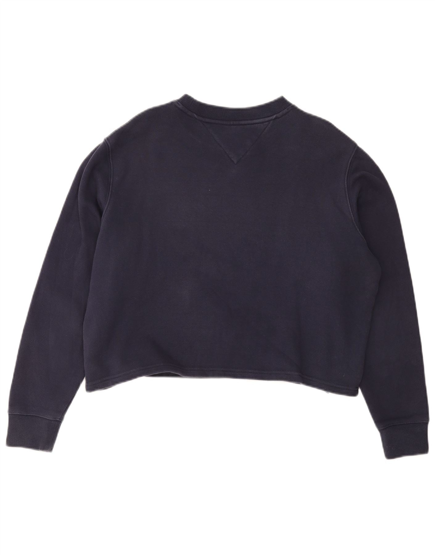 TOMMY HILFIGER Womens Crop Graphic Sweatshirt Jumper UK 16 Large Navy Blue