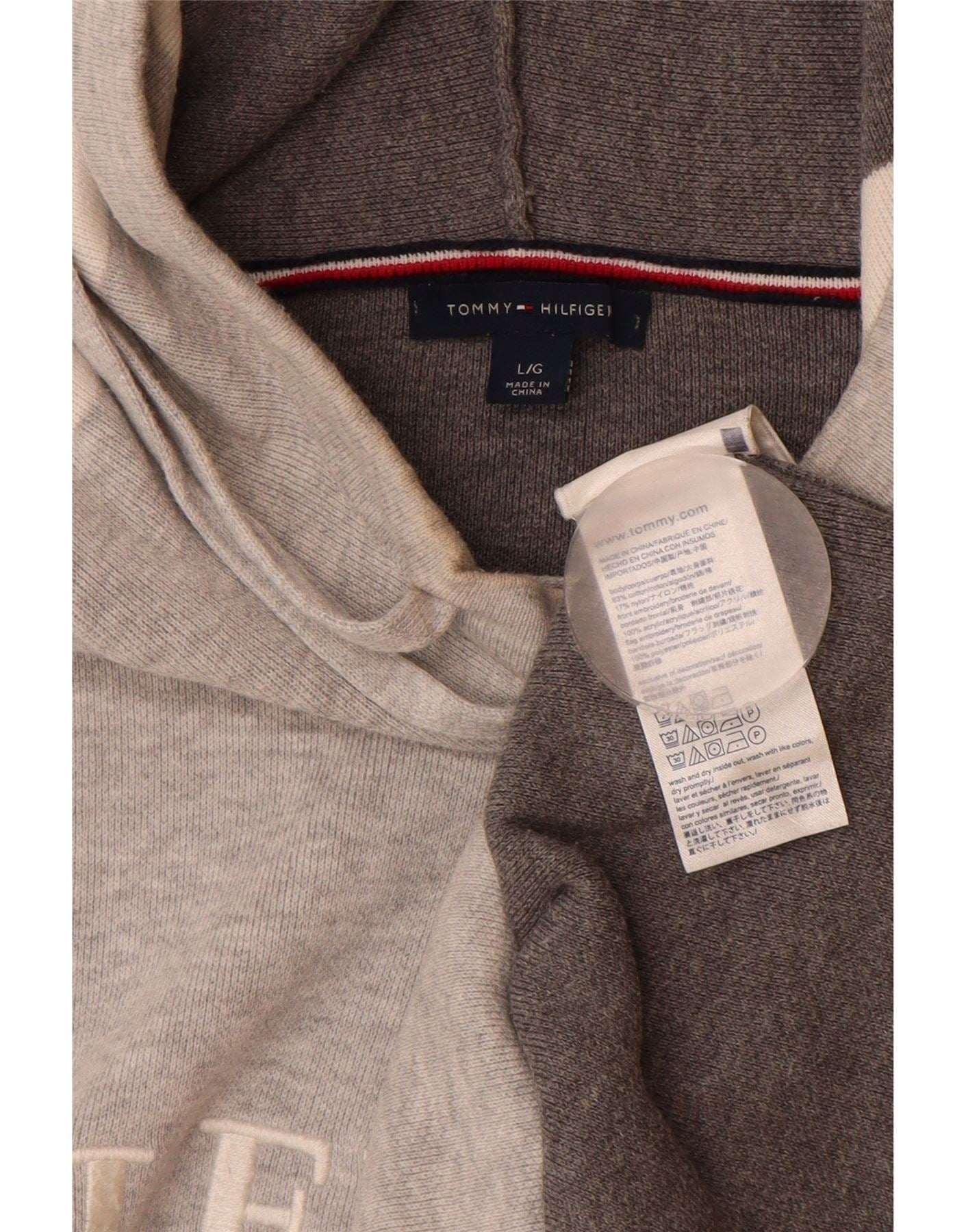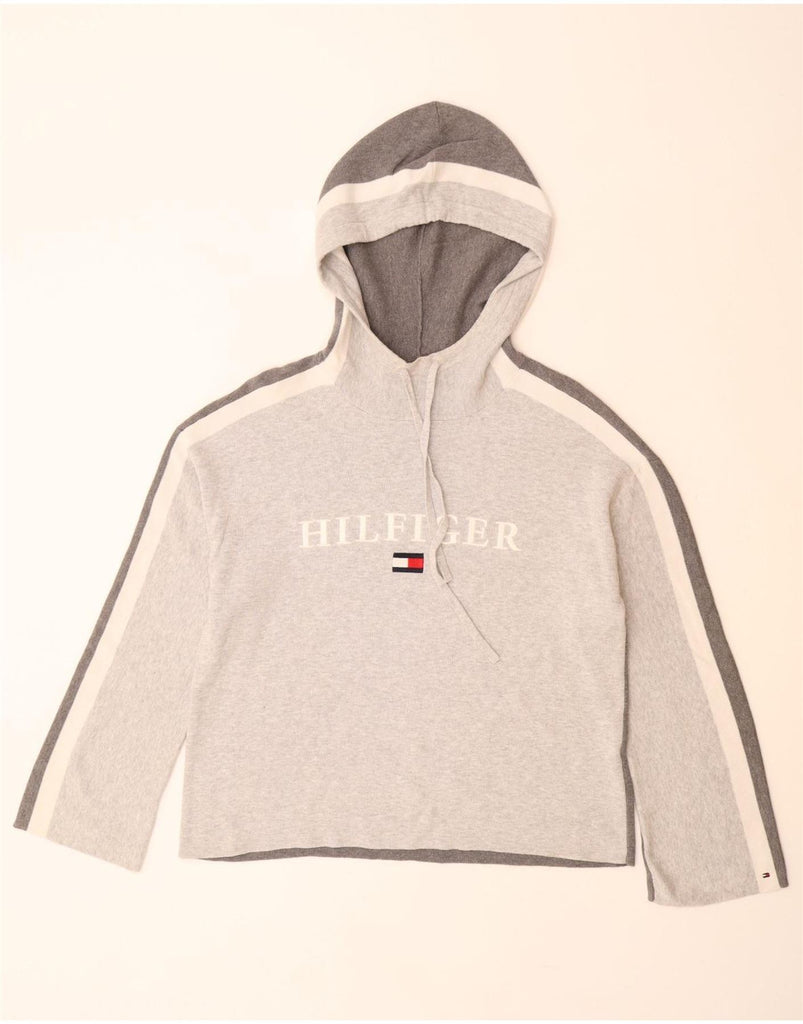 TOMMY HILFIGER Womens Graphic Jumper Sweater UK 14 Large Grey Colourblock