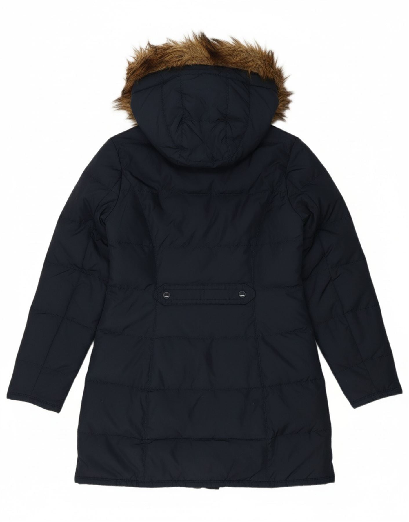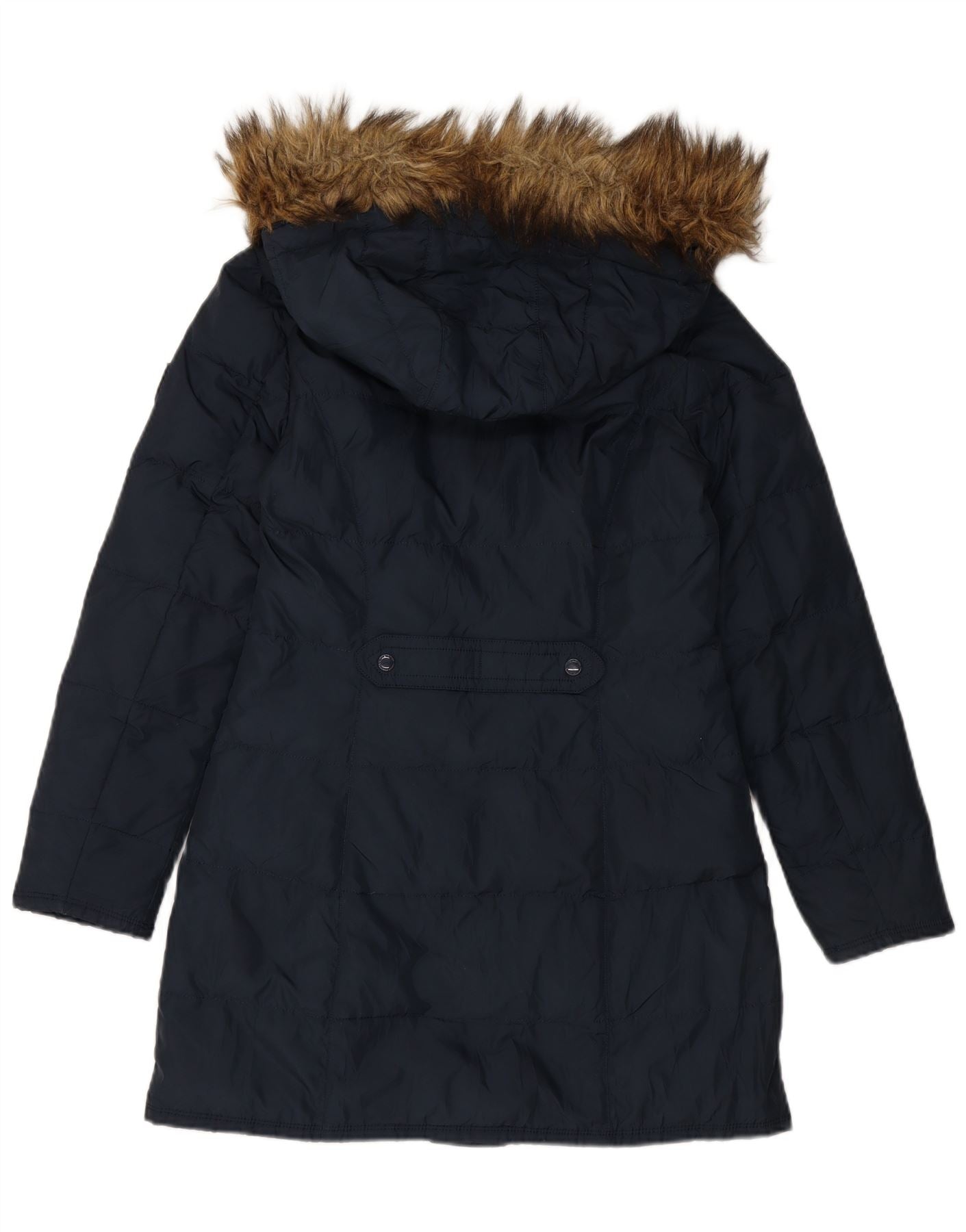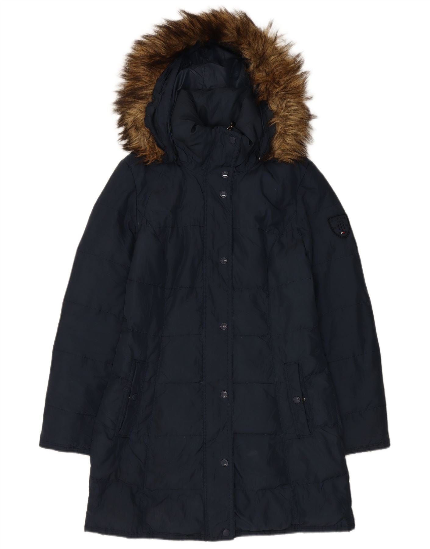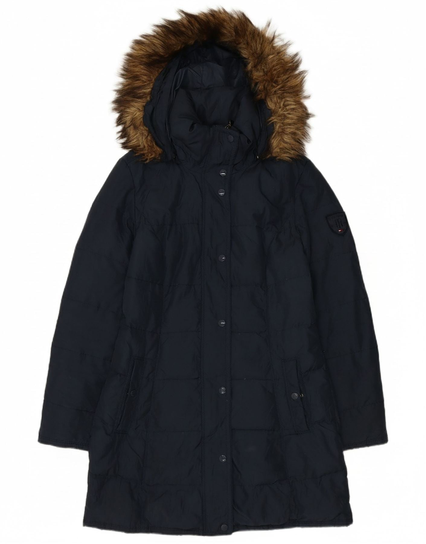 TOMMY HILFIGER Womens Hooded Padded Coat UK 10 Small Navy Blue Polyester