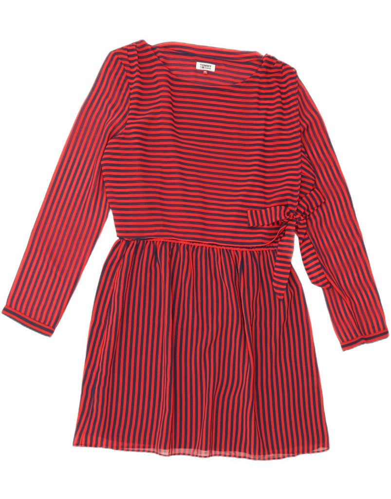 Damska sukienka o linii A z długim rękawem TOMMY HILFIGER UK 18 XL w czerwone paski
