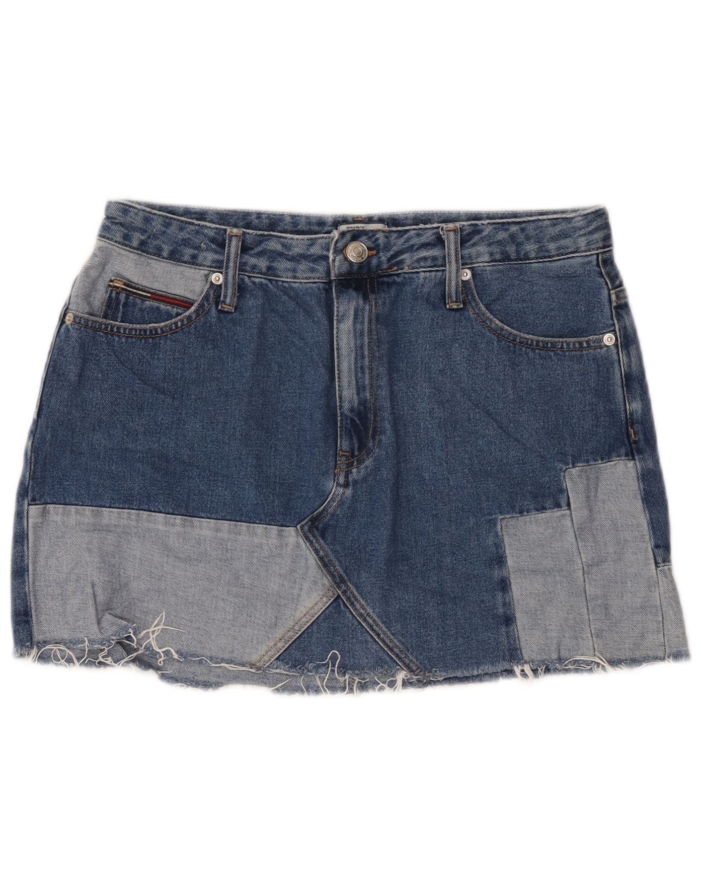 Damska mini spódniczka dżinsowa Tommy Hilfiger duża W32 niebieska patchworkowa bawełna