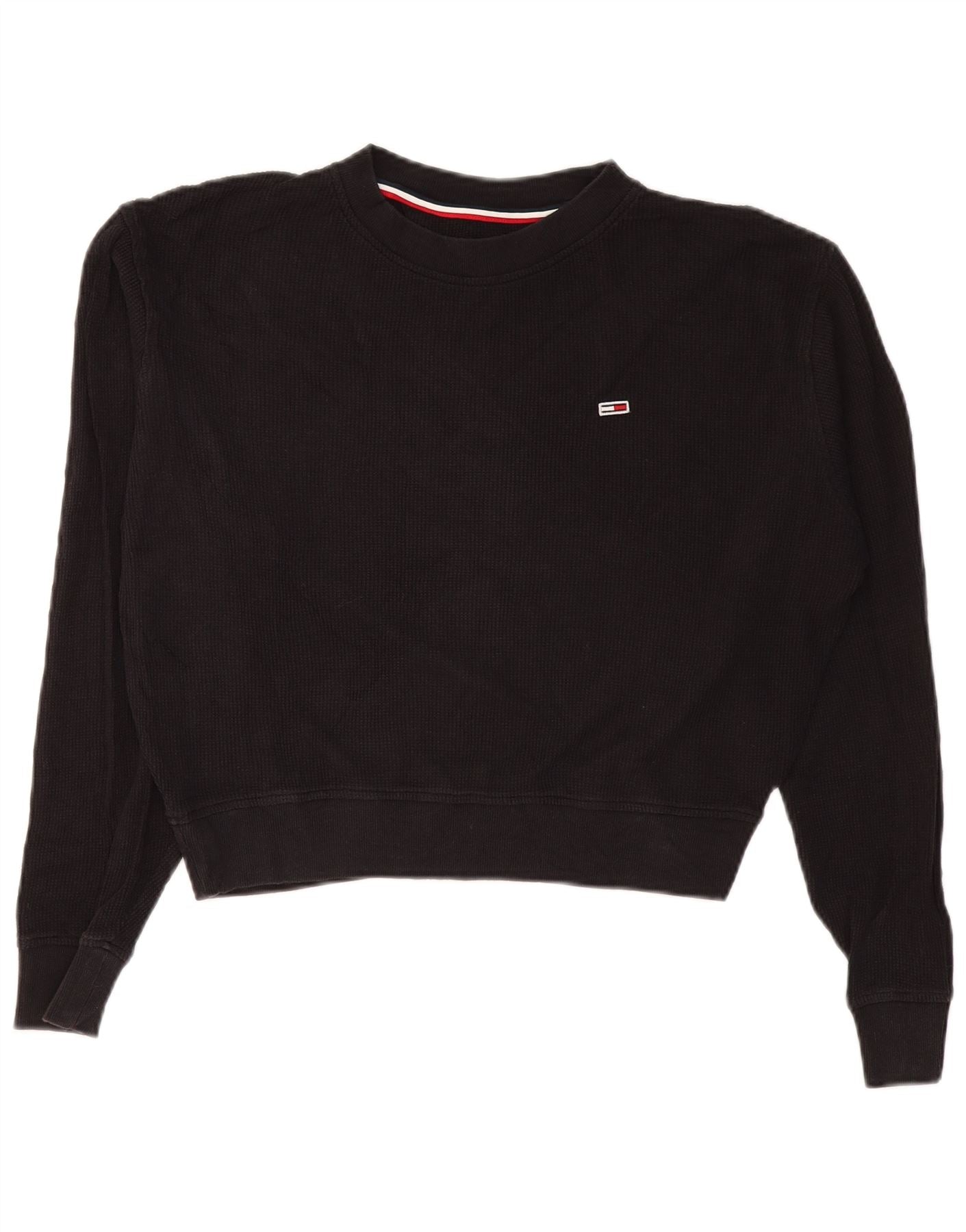 TOMMY HILFIGER Damski krótki top oversize z długim rękawem UK 10 Small Black
