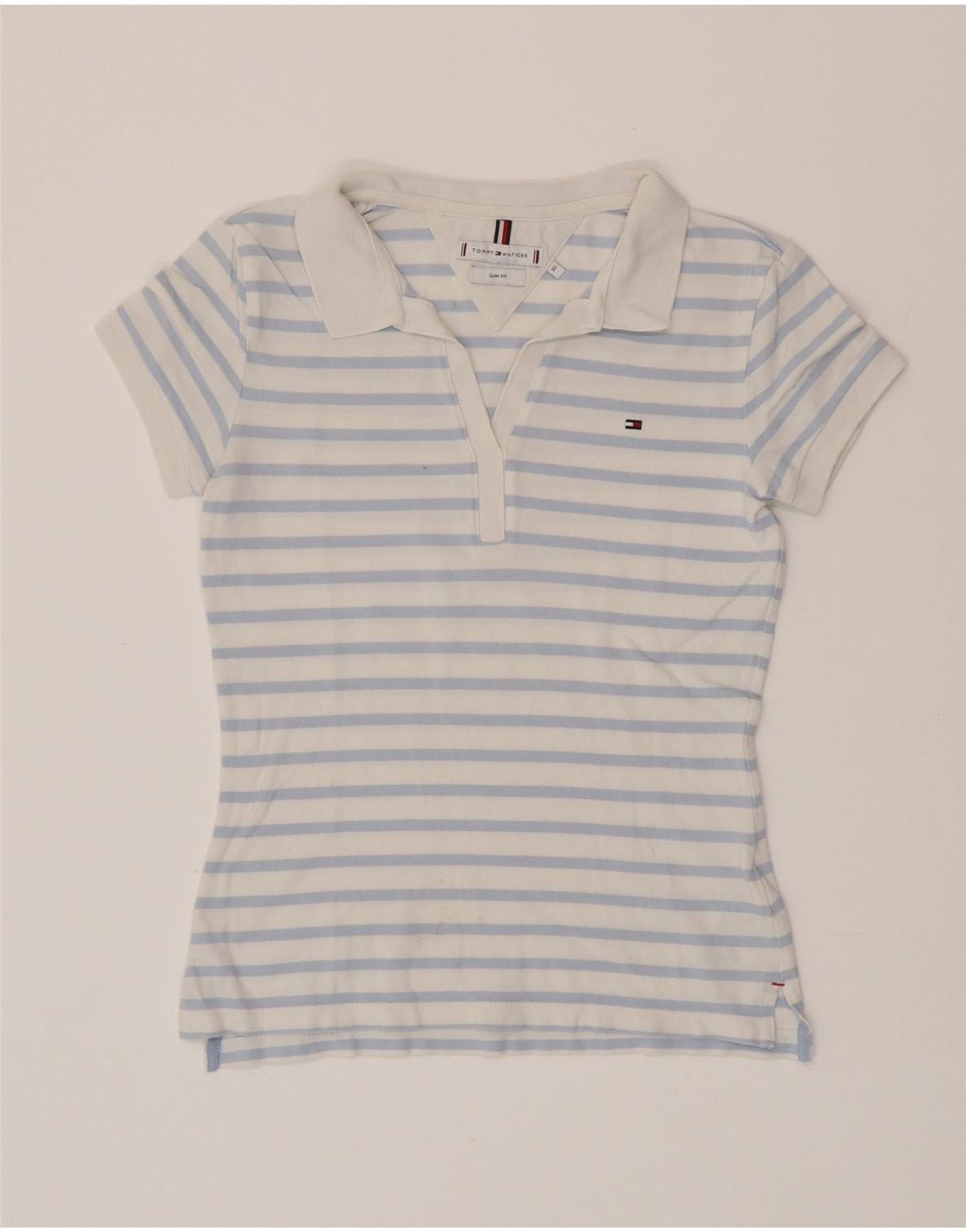 Damska koszulka polo TOMMY HILFIGER slim fit UK 6 XS, bawełniana w niebieskie paski
