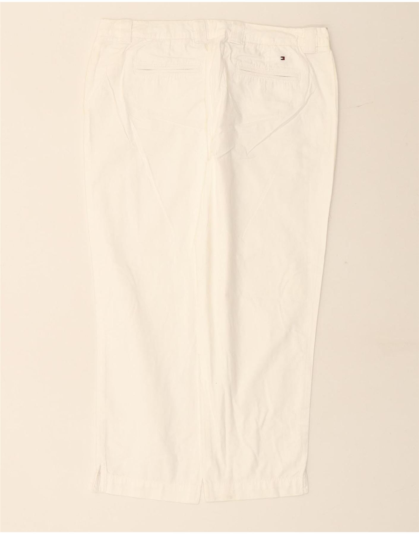 Spodnie damskie TOMMY HILFIGER Straight Capri UK 10 W27 L24 Biała bawełna