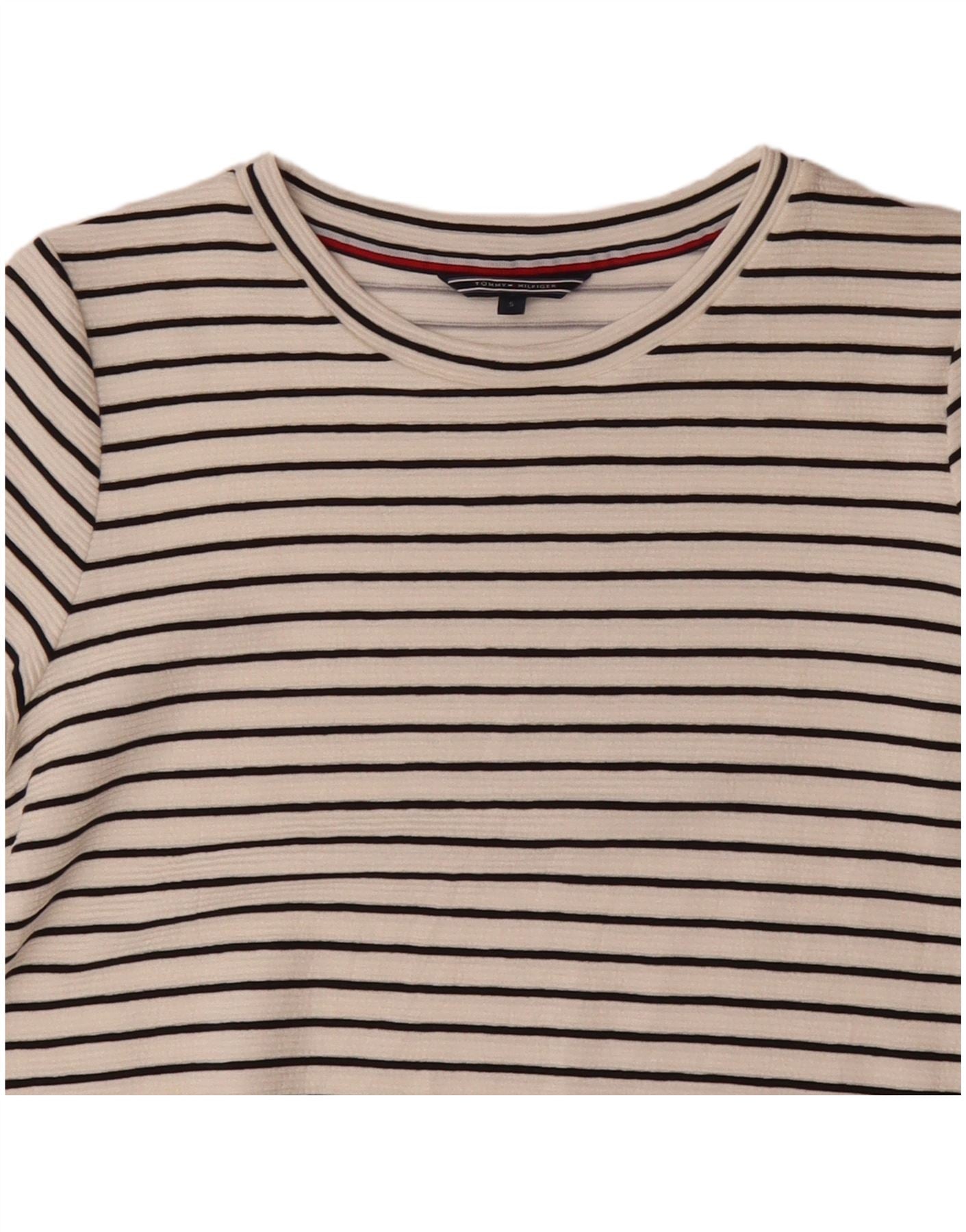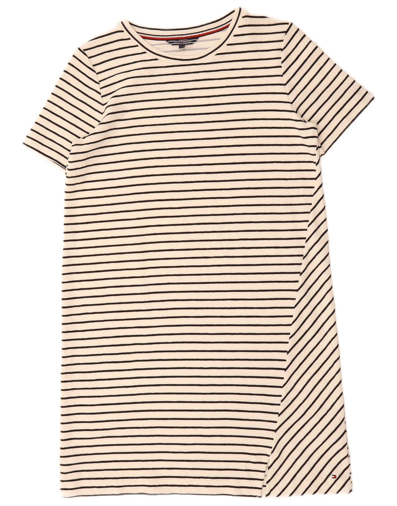 TOMMY HILFIGER Womens T-Shirt Dress UK 10 Small White Striped Viscose