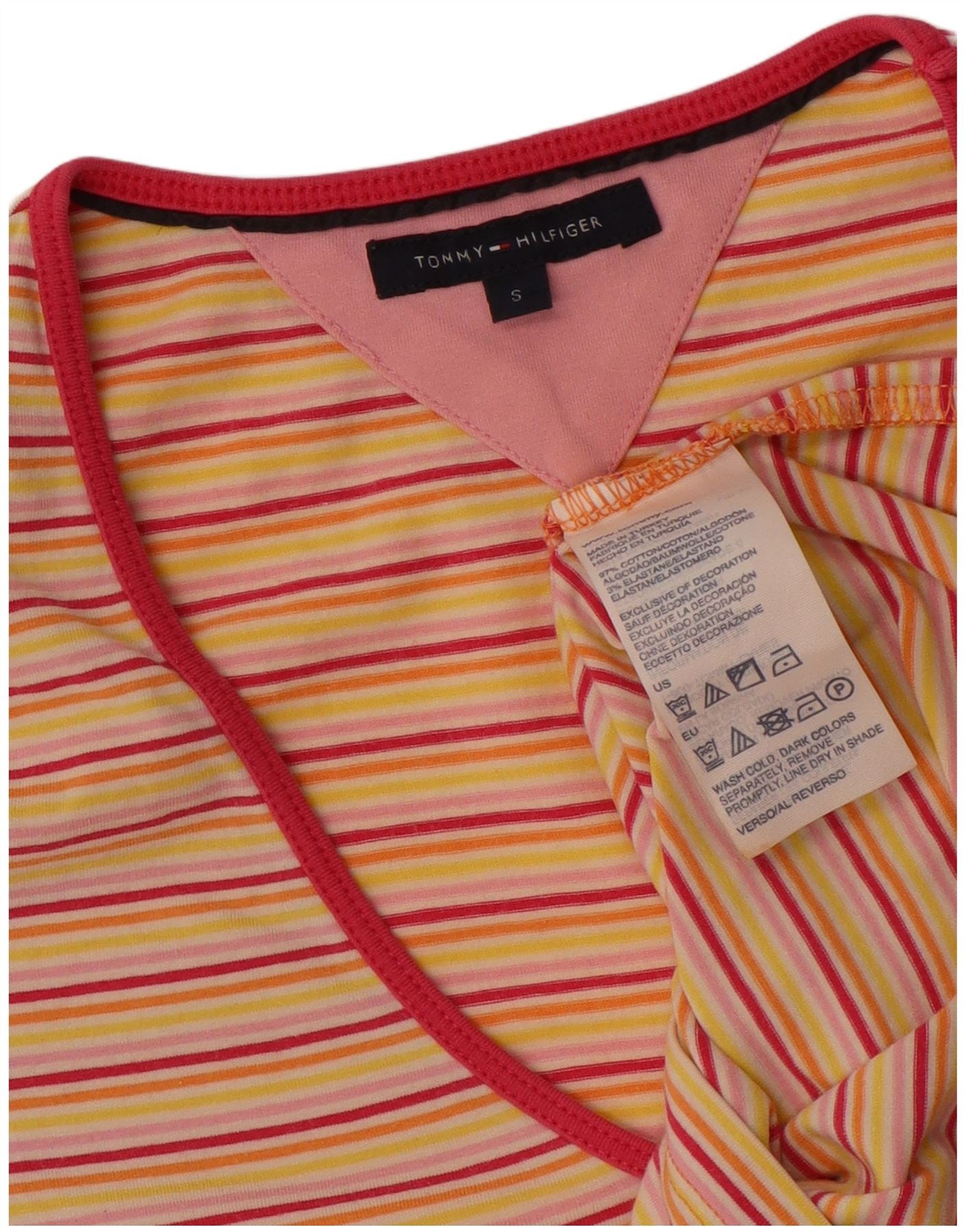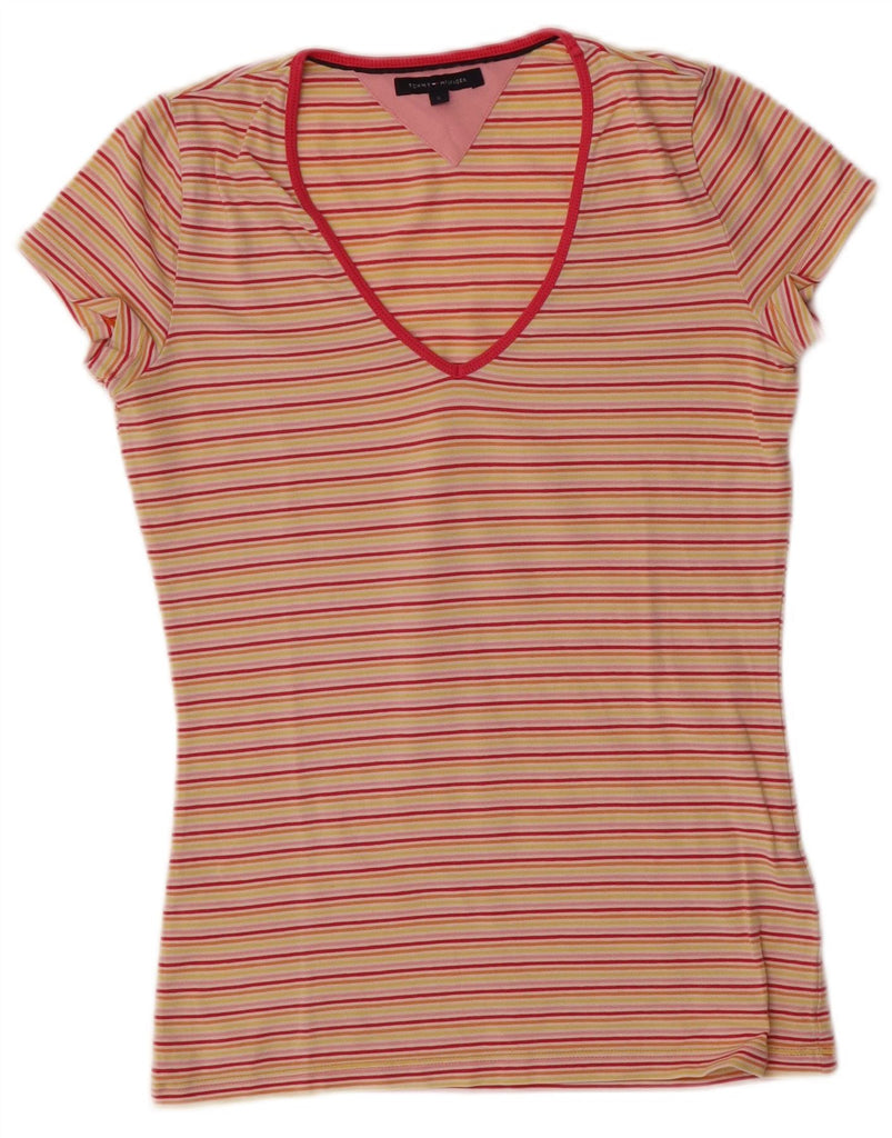 TOMMY HILFIGER Womens T-Shirt Top UK 10 Small Multicoloured Striped Cotton