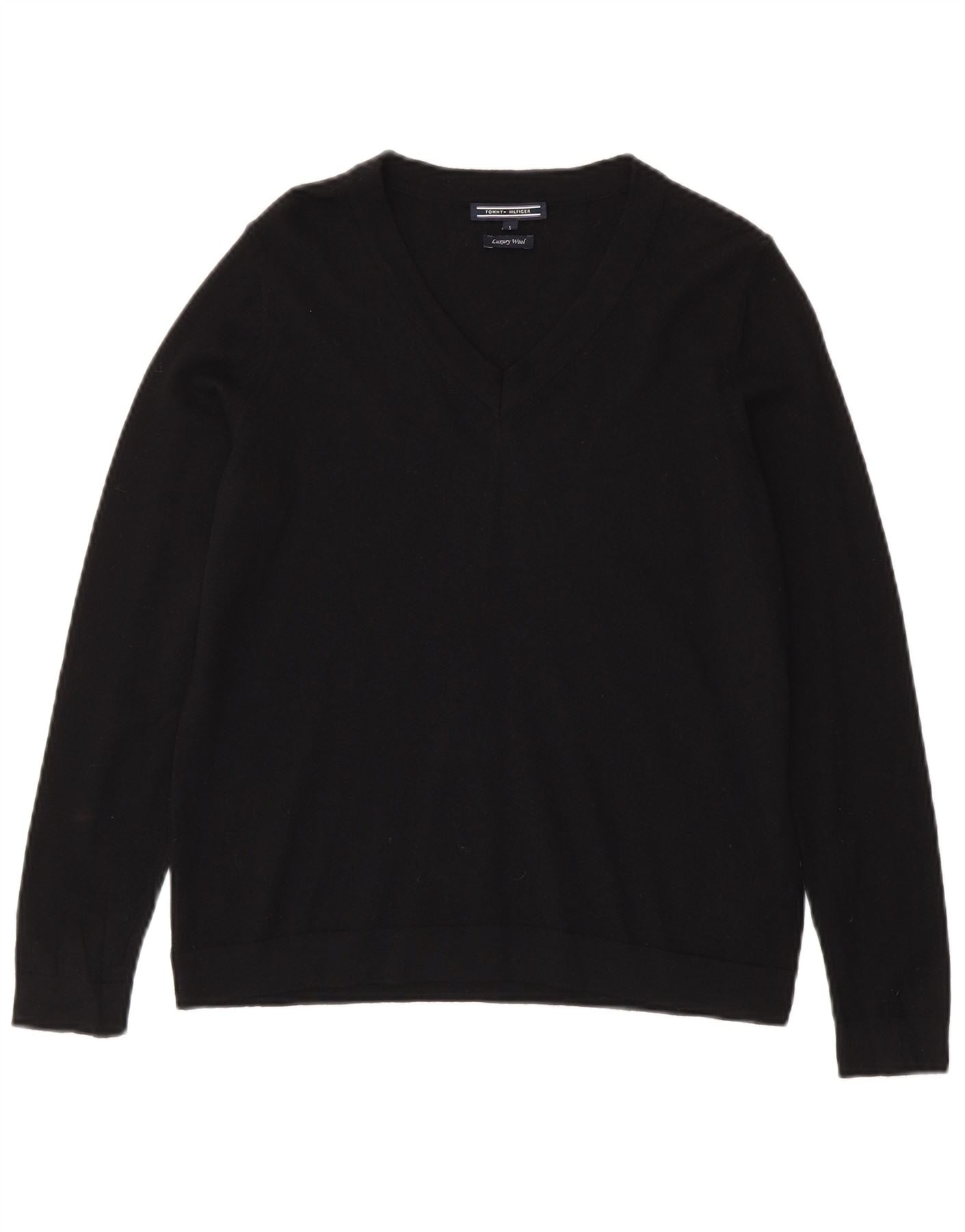Home > Tommy’ego Hilfigera > Damskie > Swetry > Sweter damski Tommy Hilfiger z dekoltem w kształcie litery V, UK 10, mała czarna wełna