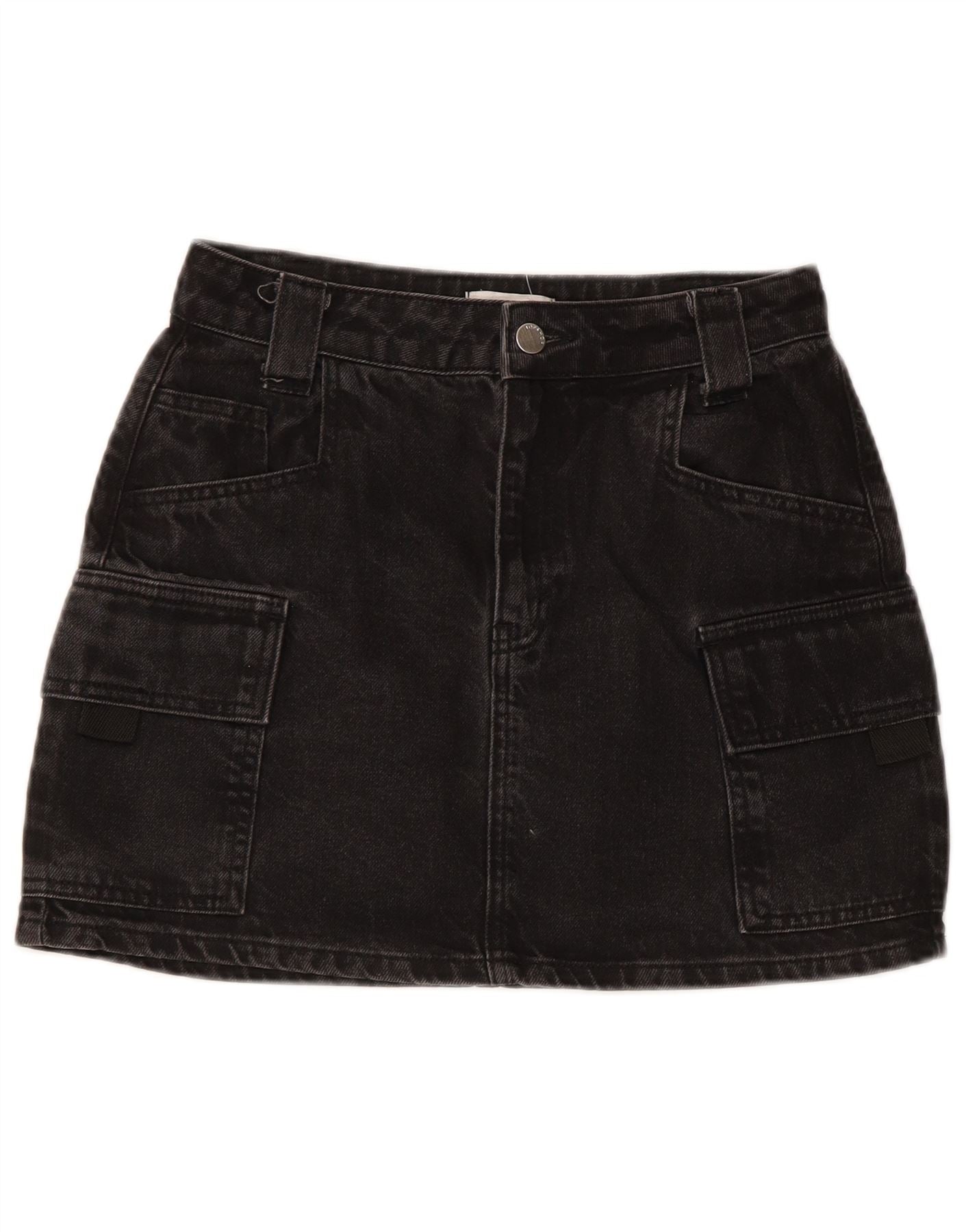TOPSHOP Damska dżinsowa spódnica mini cargo UK 8 mała W26 czarna bawełna