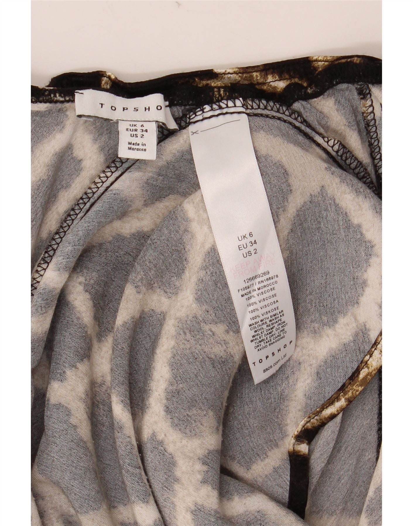 TOPSHOP Damska spódnica maxi UK 6 XS W24 Brązowa wiskoza z nadrukiem zwierzęcym