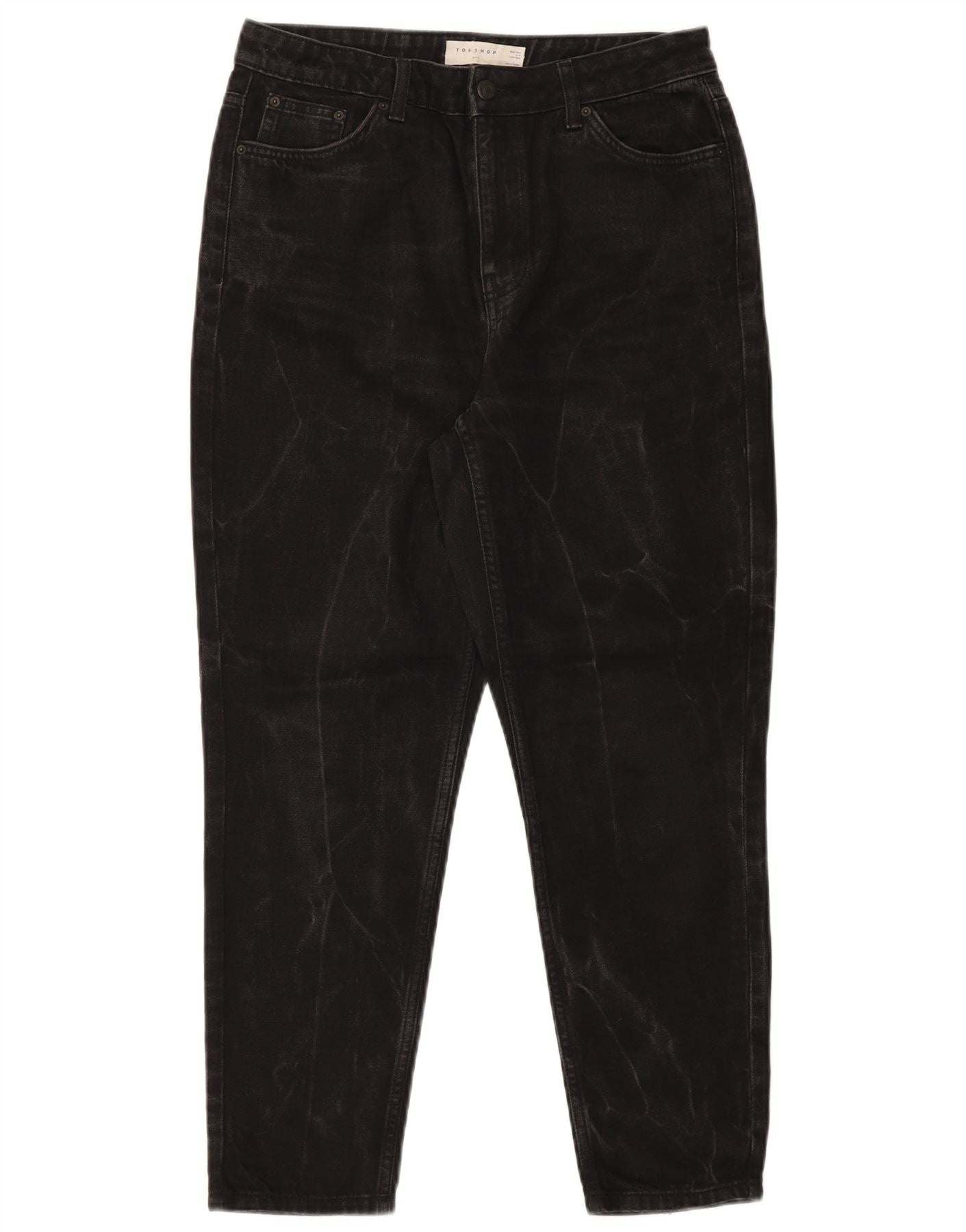 TOPSHOP Womens Mom Acid Wash High Waist Tapered Jeans W30 L26 Black Cotton